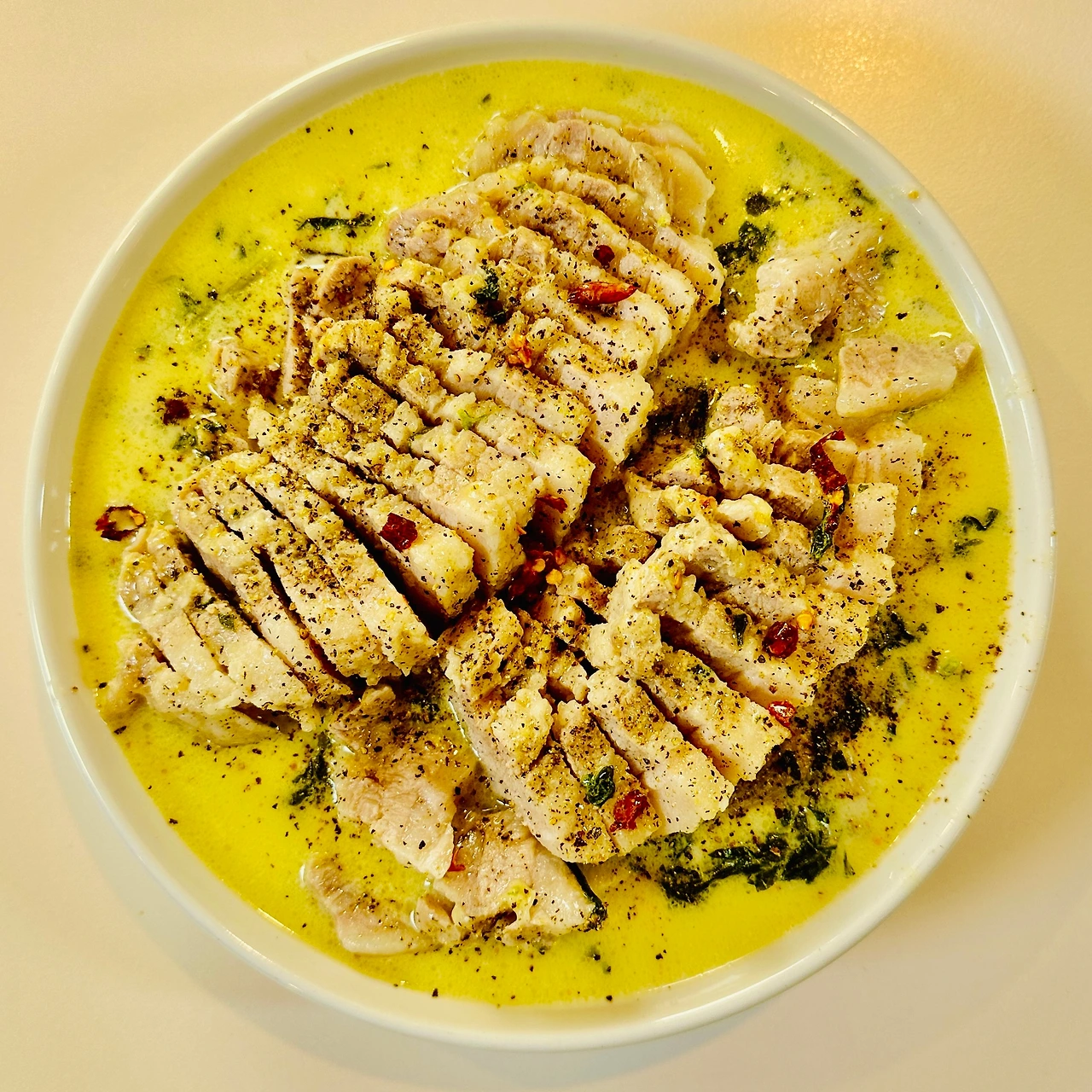 시금치 크림 삼겹살 (국적 없음, 냉장고에 있는 재료 아무거나 모아서 요리함)