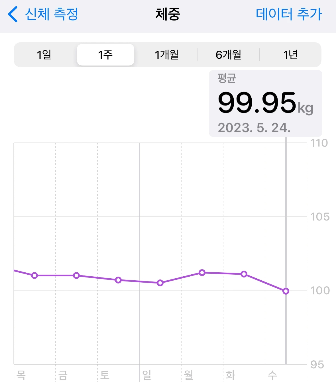 20일 차 체중 : 99.95kg (어제보다 -1.15kg / 목표 체중까지 20.85kg 남음)