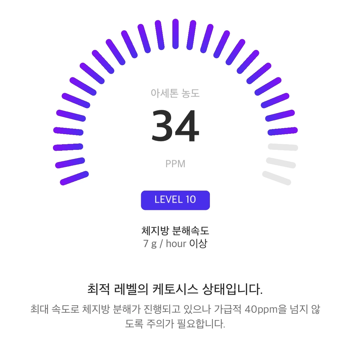 - 호흡 케톤 : 34ppm (아침 공복 기준)