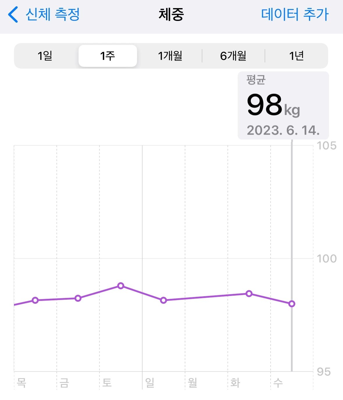 41일 차 체중 : 98kg (목표 체중까지 18.9kg 남음)