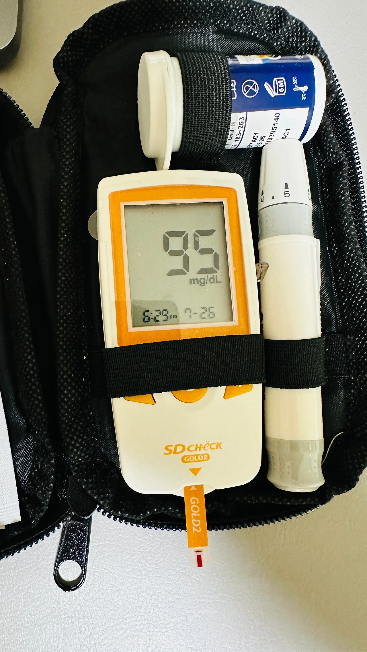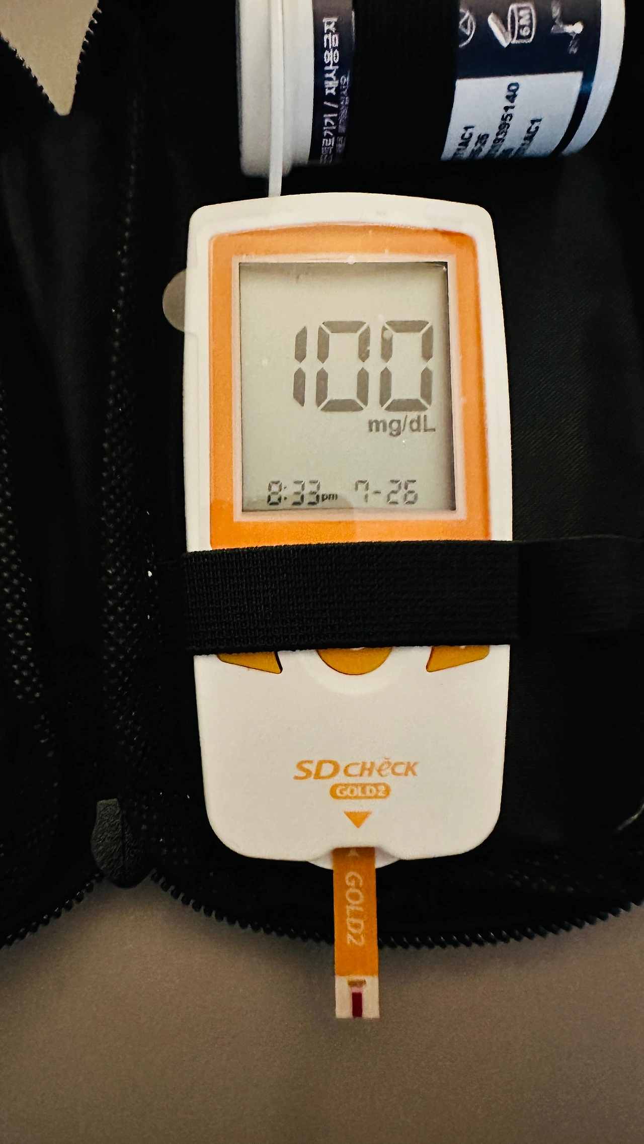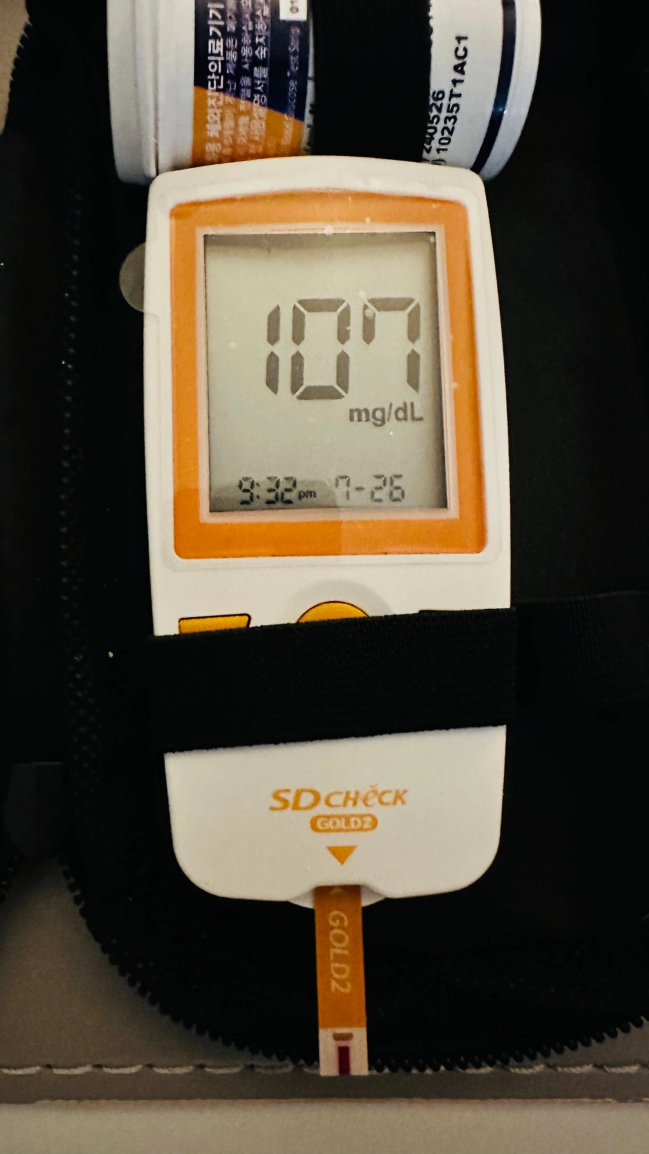 오늘의 저녁식사에는, 위의 두 가지만 있었다. 저항성 전분으로 이루어진 밥과, 스팸 삼겹살 김치찜. 먹기 전의 혈당을 보자.