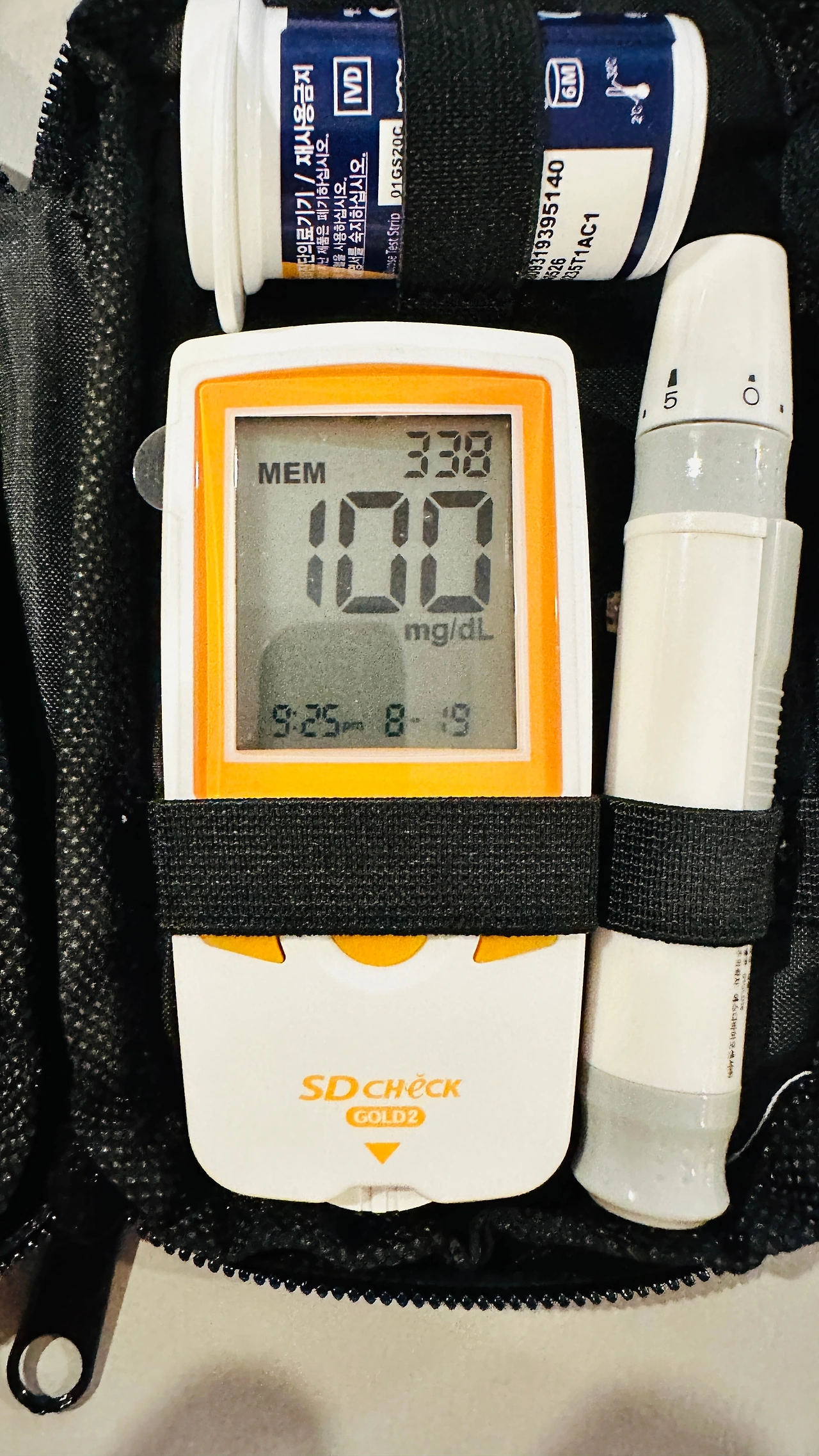식사 종료 후에, 아이 수유 시간이 한 시간 정도 남아서 아내와 공원 한 바퀴 걷다가 집에 들어갔다. 아내가 수유를 하는 동안, 나는 예전 똠얌꿍의 기억을 재확인하고 싶어 혈당을 체크해 봤다. 식사 종료는 저녁 8시 10분, 혈당을 체크한 시간은 아래 사진처럼 9시 25분, 약 1시간 15분이 지난 시점이었고. 결과는 100mg/dl라는 전혀 예상 못한 수치였다.