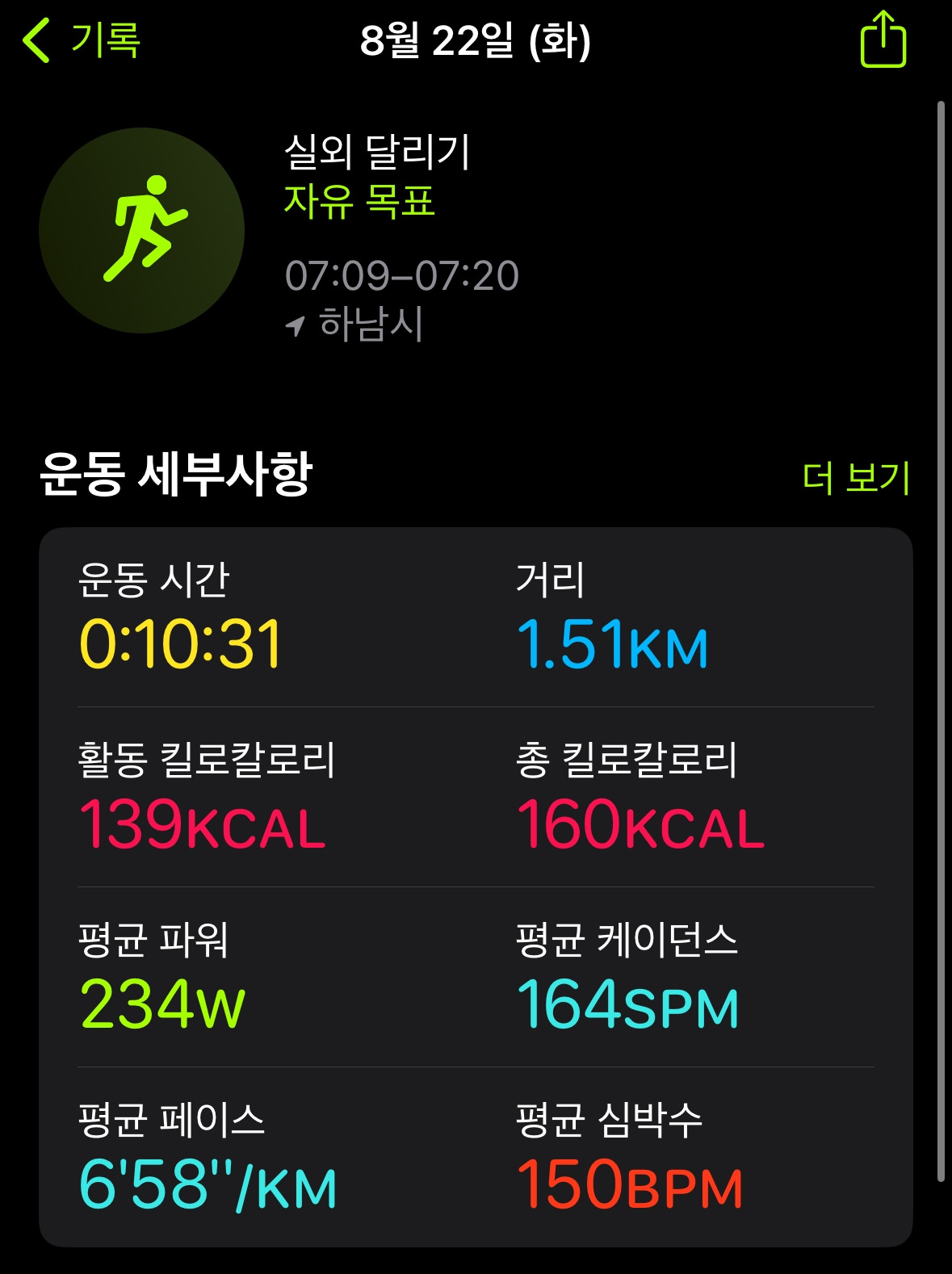 1.5km를 뛰어봤다. 평소보다 500미터 더 뛴 것이다. 페이스는 더 느려졌고, 시간은 10분 30초. 중학교 때 꼴찌하던 수준보다 더 느려졌다.