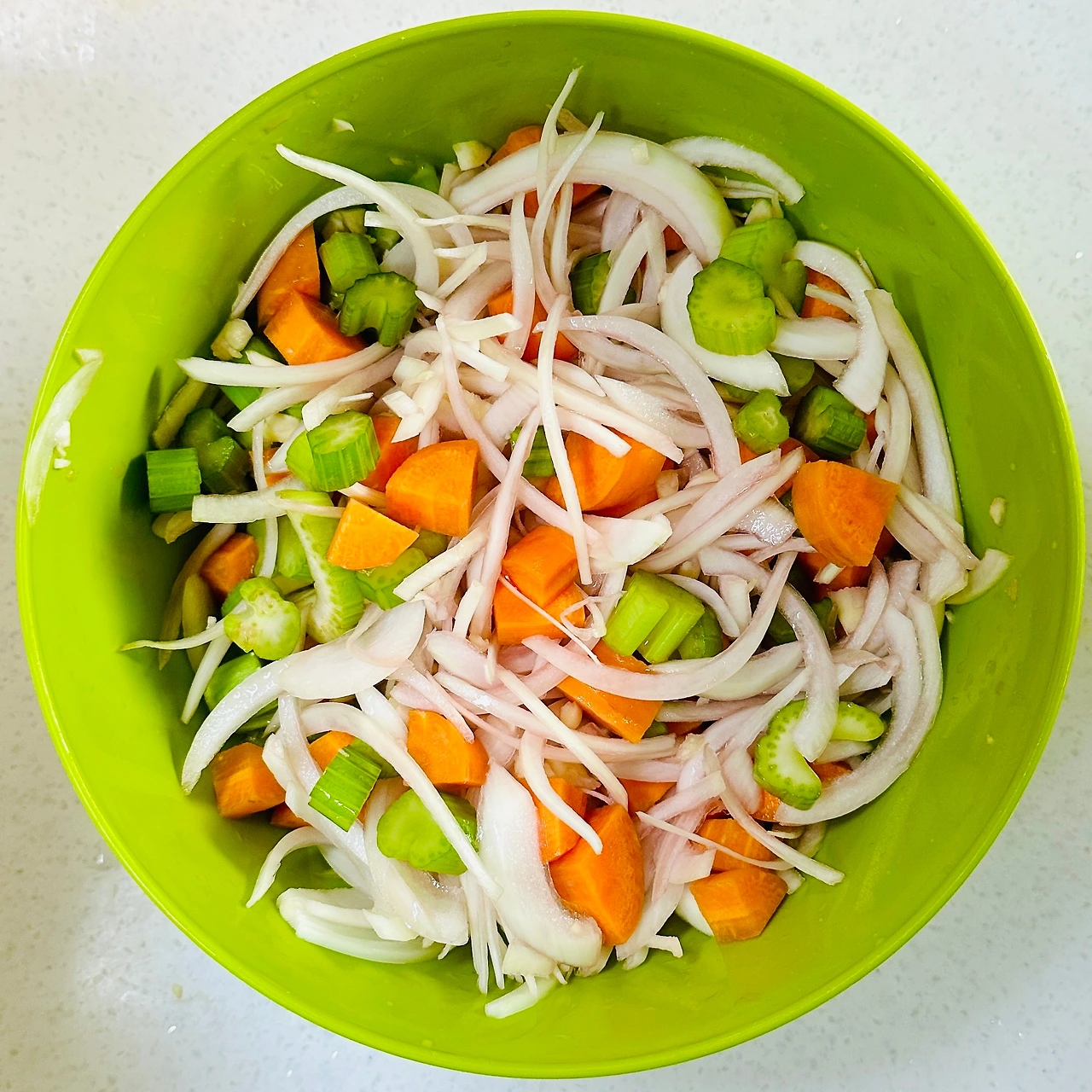- 원래는 채소를 와인에 반나절은 재웁니다.