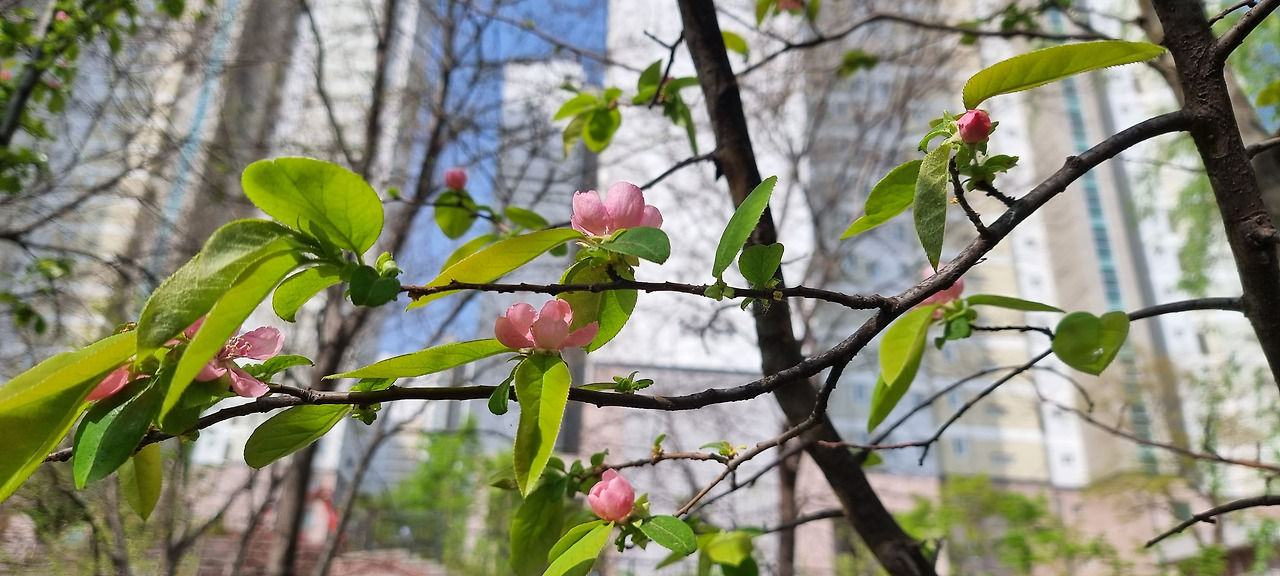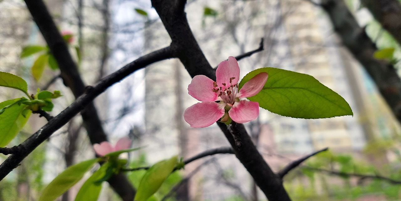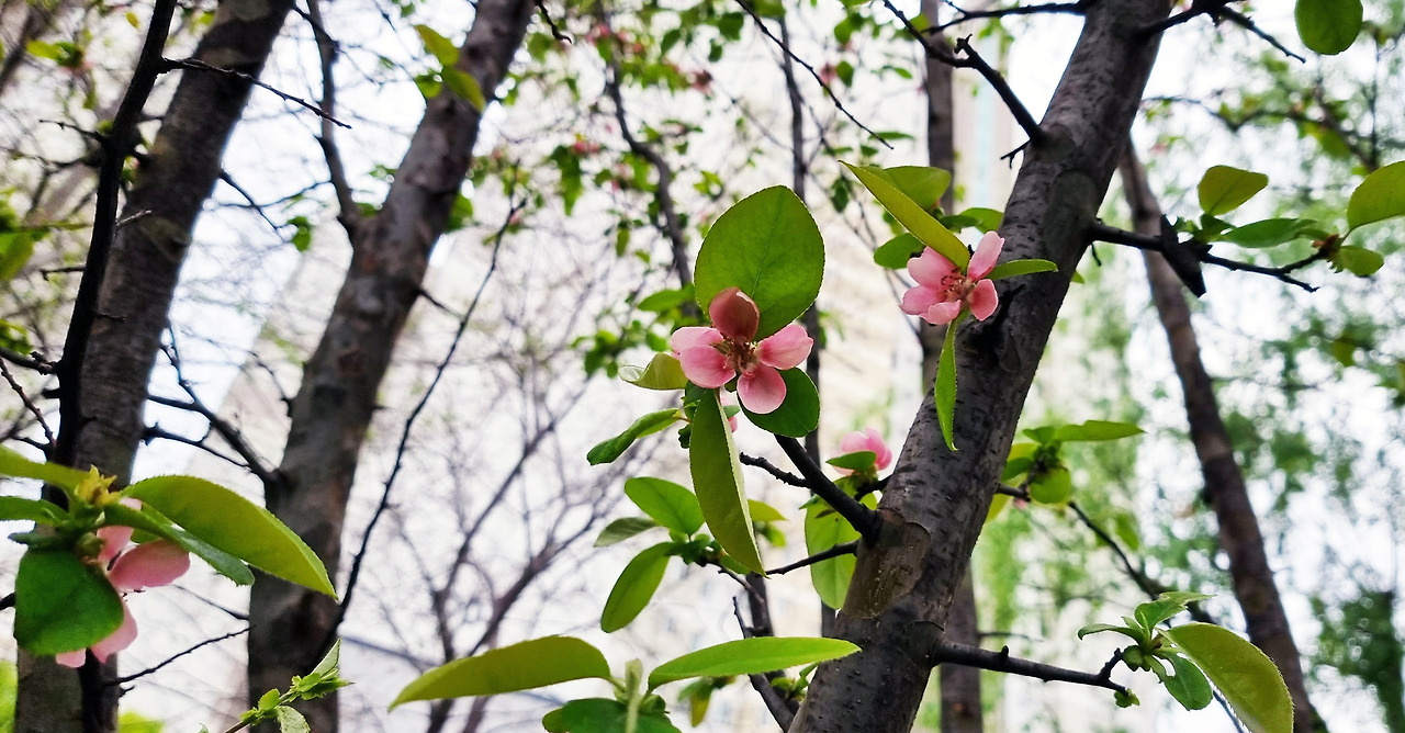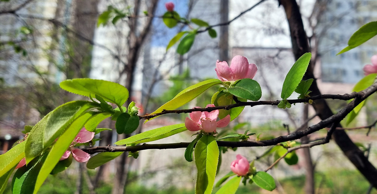 전형적인 농촌 마을에서 나고 자랐다. 가을이면 노랗게 익어가는 모과가 눈에 들어오곤 했다. 그런데 모과나무 꽃을 전혀 모르고 자랐다. 그런 모과나무 꽃이 눈에 인상깊에 들어와 박힌 것은 2005년 5월 어느날. 지은지 오래된 벽제(경기도) 어느 아파트 화단에서 발견하면서다.
