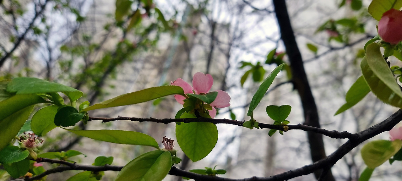 어떤 꽃인가 알아보던 중 화류목, 화초목이란 다른 이름이 있다는 것도 알게 됐는데 음~ 화류목이란 이름에서 기생을 떠올렸다면 지나친 비약일까? 사람을 유혹할 정도로 예쁜 꽃이라. 꽃은 대부분 예쁘거나 아름답다. 그런데 모과나무 꽃은 더욱 예쁘거나 아름답다. 그래서.