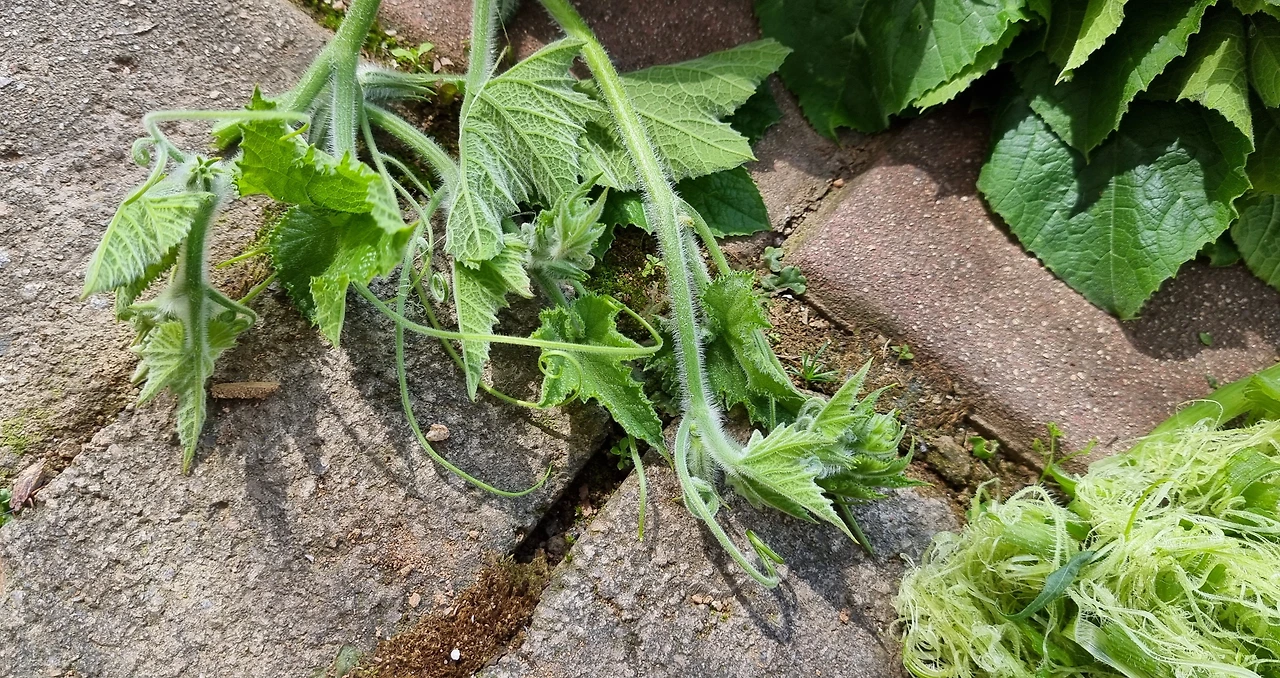 토요일과 일요일에는 주로 아점을 먹는다. 호박잎을 쪄 아점 밥상에 올렸더니 남편이 호박잎 사이에서 손톱만 한 호박이 달린 줄기를 발견해내고 이처럼 묻는다.