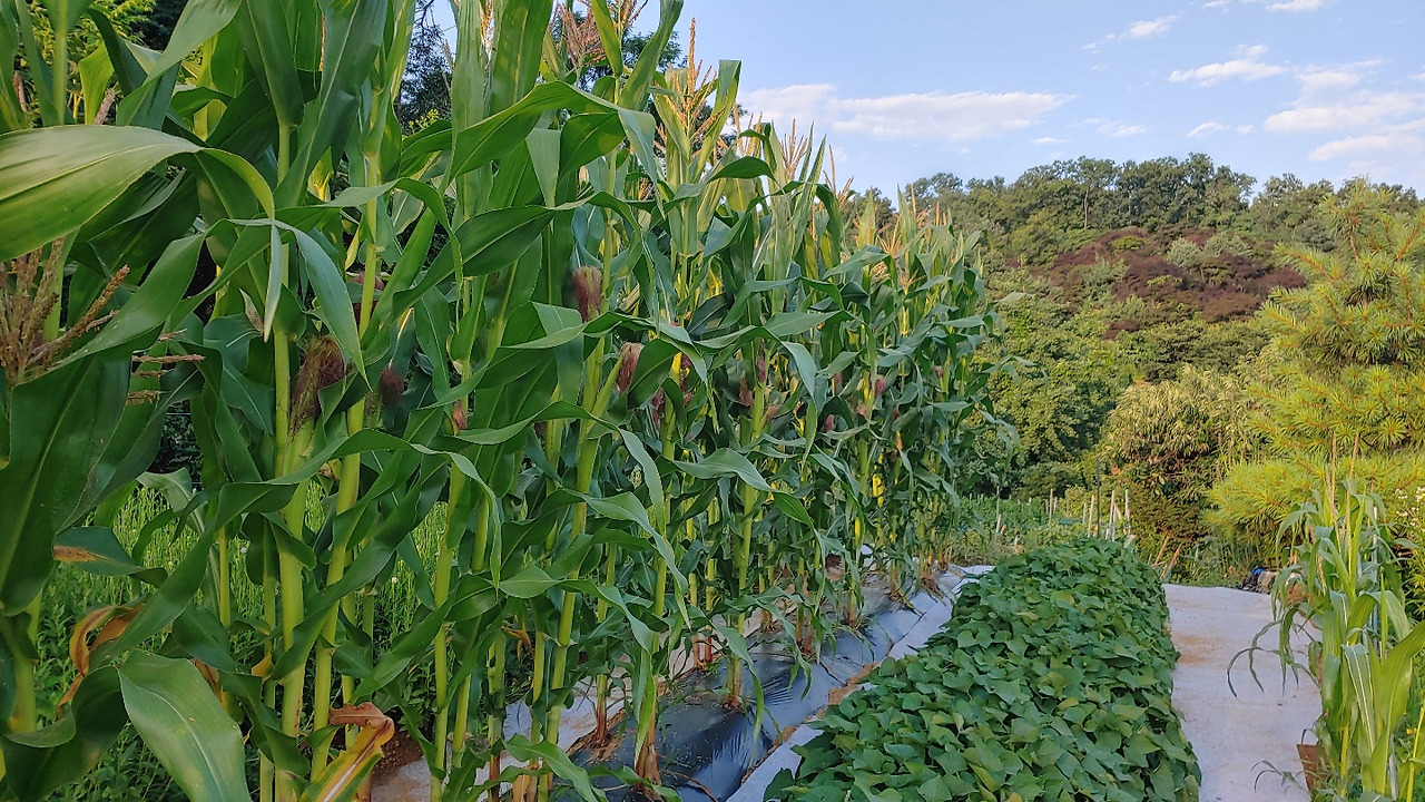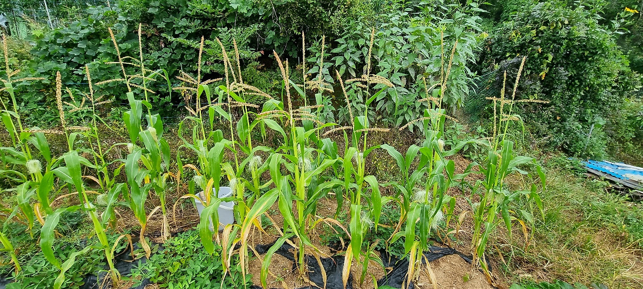 지방마다 날씨 조건이 다르다. 심을 수 있는 것도 다르고 심는 시기도 다르다. 당연히 그에 맞춰 심어야 어느 정도의 수확이 가능하고 말이다. 추석에 가는 자식들에게 옥수수를 맛보여주시곤 해서 엄마의 말에 믿음이 갔지만 이렇게 망설이다가 심을 때를 놓치곤 했다. 하지만 올해는 해마다 되풀이하던 망설임을 접고 한여름에 모종을 만들어 말복이 지난 후 옮겨 심었다.