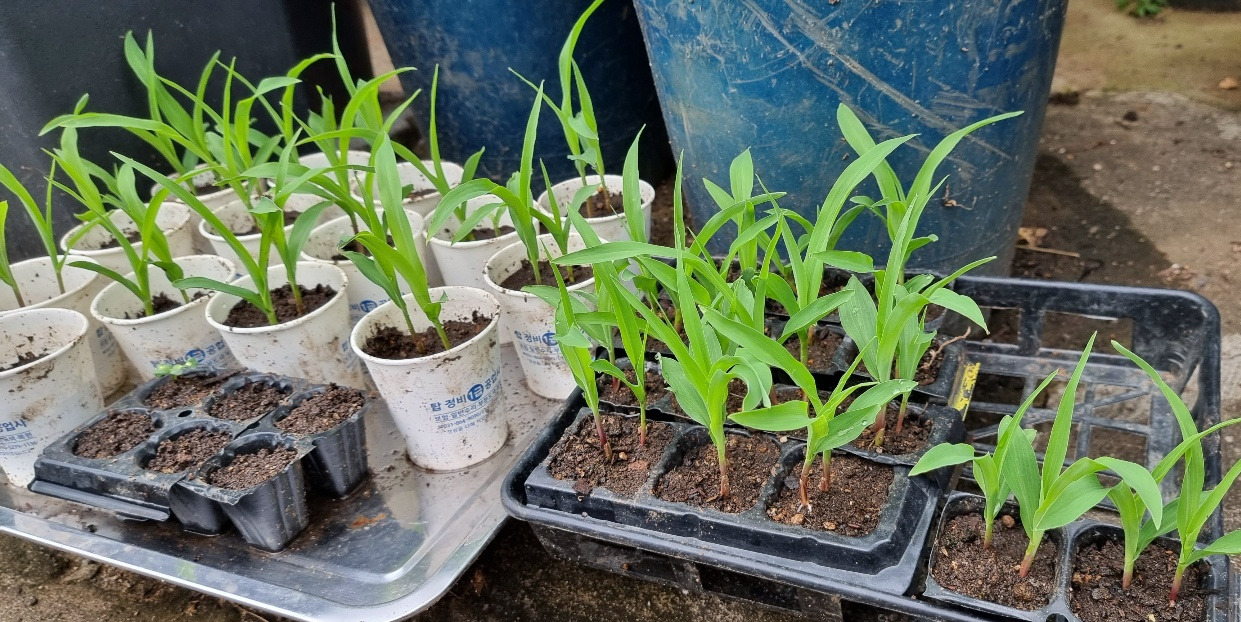 올해 말복 무렵 만든 옥수수 모종. 9월 중순에 옮겨 심었다.