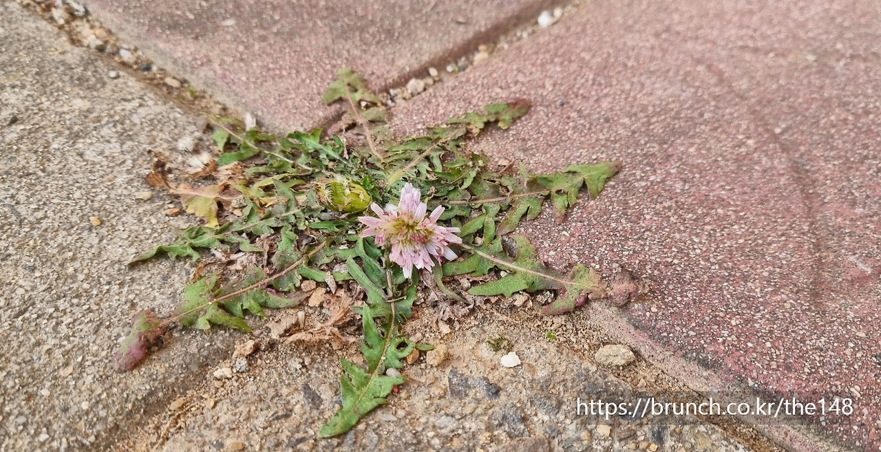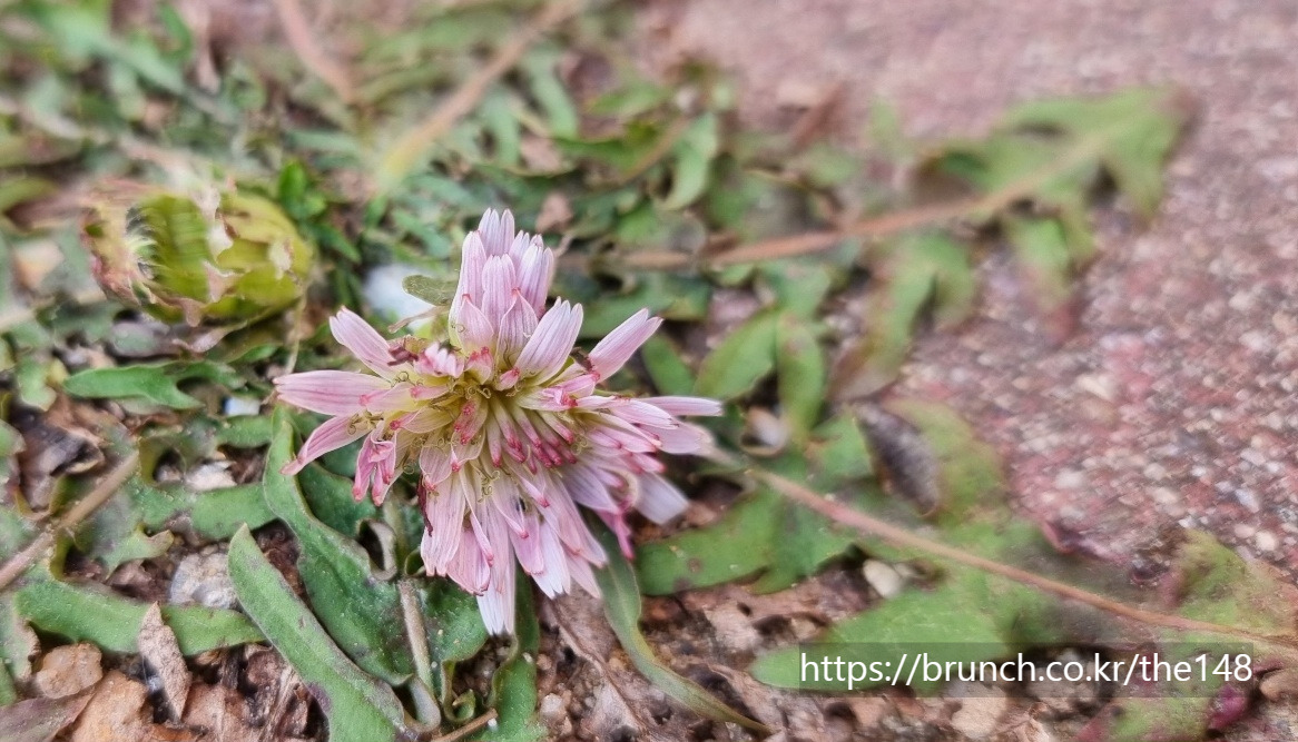 올해 유심히 보는 곳이 있다. 지난해 늦가을 웬일로 분홍색 민들레가 피어났던 자리다.