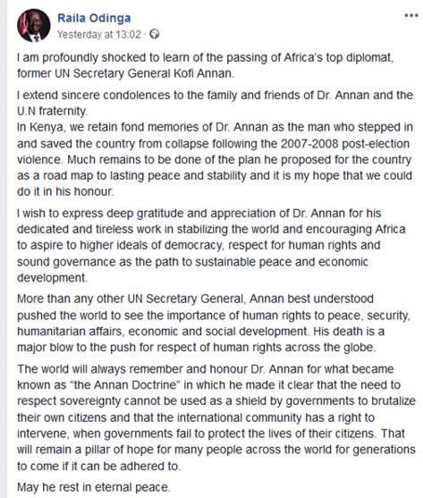 안토니우 구테흐스 UN 사무총장은 아난이 UN 그 자체였고, "자랑스러운 아프리카의 아들로 태어나, 평화와 인류를 위해 싸우는 세계적 투사가 되었다"라며 애도의 뜻을 전했다. '아프리카의 자랑스러운 아들', 코피 아난을 기리며 그와 아프리카에 대해 정리해 보았다.