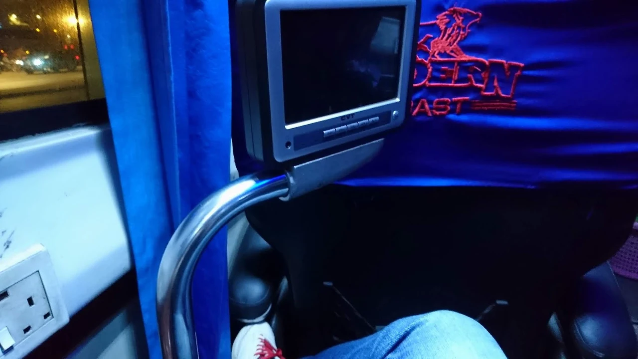 나는 Modern Coast 버스의 VIP석을 예약했는데, VIP석은 한국 우등버스 오른쪽 좌석들 혼자 떨어진 좌석이었다. 널찍하고 뒤로도 꽤 젖혀지며, 마치 옛날 스타일 소파처럼 나무로 된 팔걸이가 있었다. 비행기처럼 개인 스크린도 있는데, 딱히 뭐가 나오진 않았다. 가장 좋았던 것은 전기 콘센트와 USB 충전 포트! 작동 안 될 줄 알았는데, 작동됐다. (하지만 오는 버스에선 작동되지 않았다.)
