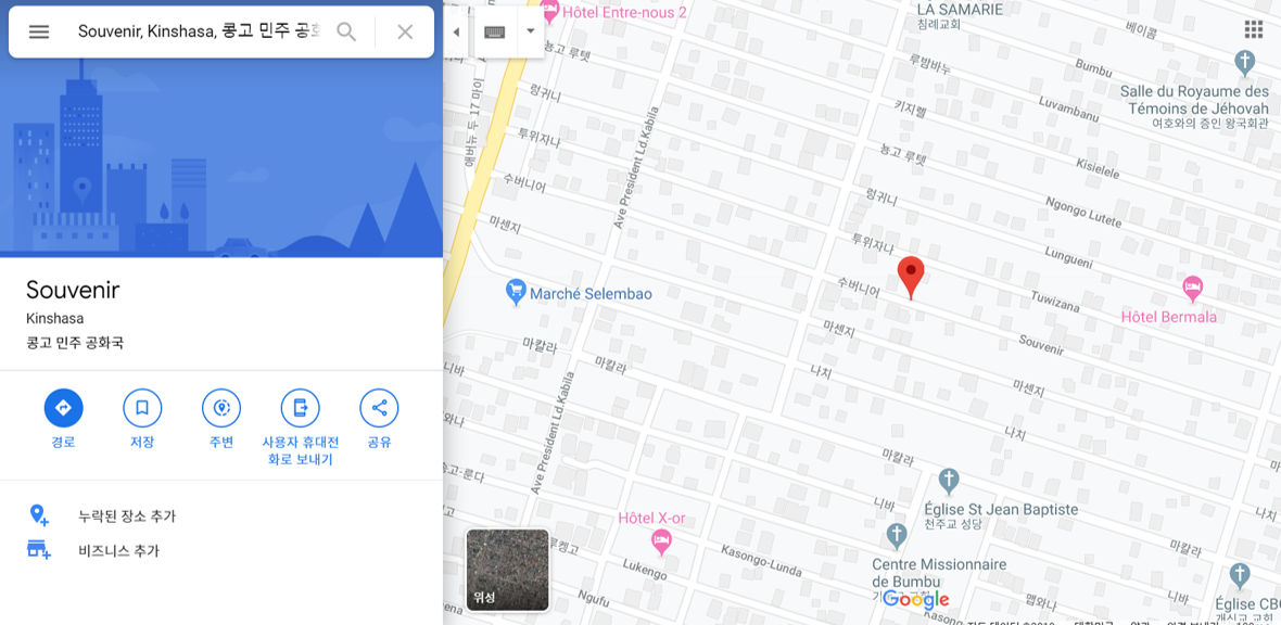 이건 소설이랑 큰 상관없는 이야기지만, 구글 맵에서 검색이 잘 안된다고 해서 킨샤사에서 기념품을 살 수 없는 것은 아닌 것으로 보인다. 조금 검색해보니 Je Gagne Ma vie라는 기념품 가게(https://www.facebook.com/Galerie-dart-Je-Gagne-Ma-Vie-2040093586283730/)도 있고, 많이 복잡해 보여서 외국인이 가도 괜찮을지는 잘 모르겠지만, 큰 시장인 Marché Gambela에서도 기념품을 살 수 있다는 정보가 나왔다.