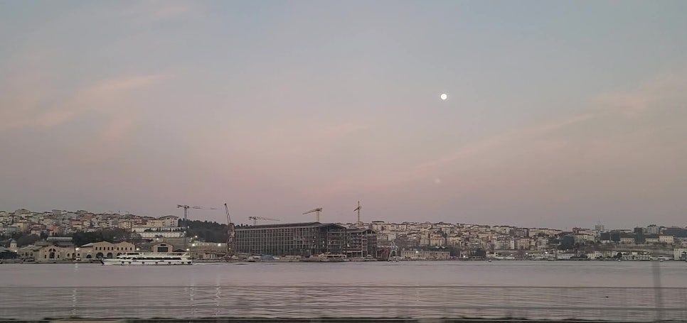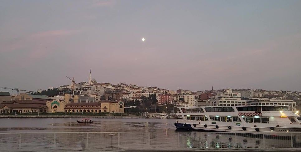 해안가 산책로를 따라 붉게 물들어가는 바다를 즐기며 걷고 있는 사람들, 잔잔한 물결 위에 떠 있는 유람선, 아직 훤한 이 시간에 이스탄불 하늘에 떠있는 둥근달, 둥근 돔과 하늘을 찌를 듯 서 있는 모스크의 첨탑, 도로로 밀려 나온 차량들, 붉은 하늘 위로 날아오른 갈매기, 그리고 구 시가지 골목에 하나 둘 불이 켜지기 시작하며 이스탄불은 또 다른 모습으로 여행자를 맞는다.