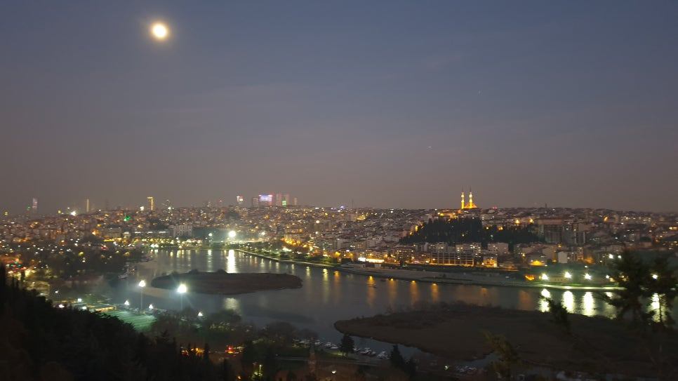 오후 7시가 넘어서고 있다. 피에르 롯띠 언덕에서 근 1시간 가까이 머문 셈이다. 내일이면 이제 이 여행을 마무리해야 하는 시간이기에, 친구들과 커피도 한잔 하며, 모처럼 느긋하게 언덕에 머문다. 밤이 깊어 가는 피에르 롯띠 언덕은 오늘도 연인들의 이야기 소리로 가득하다. 두런두런 들려오는 이야기 소리는 이내 언덕을 내려가고 잔잔히 흐르는 금각만으로 흩어진다. 살짝 흐린 하늘에 걸린 둥근 달만이 금각만 물 위에 흩어지는 이야기를 주워 담는다. 도시를 밝히는 수없이 많은 불빛은 밤이 깊어지며 더욱 또렷해지고, 여행자의 마음속엔 어느새 또 다른 불빛이 더욱 반짝거린다. 그렇게, 금각만 위로 떠 오른 달빛을 마음에 담아 언덕을 내려온다.