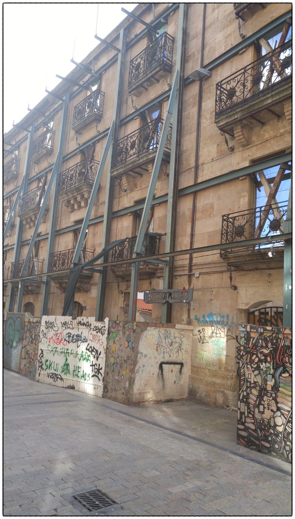 이제 골목길은 내리막 경사를 따라 넓게 펼쳐지더니 대로변으로 이어진다. 붉은 사암 벽돌로 쌓은 스테인드글라스 창이 돋보이는 집이 눈에 들어온다. 어디를 가나 무엇을 보나 예술의 경지이니 보는 이의 감탄을 자아내는 단아한 중세도시 살라망카다. ‘스페인의 숨겨진 보석’ 이란 예찬이 허명이 아니었다는 것을 절실히 깨달은 중세도시 살라망카다.