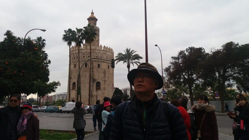 우리는 약 1시간 30분가량 달리다가 과달키비르 강을 따라 형성된 밀집된 건물들이 눈에 들어오기 시작한다. 흰색과 붉은색의 고만고만한 건물들 사이에서 유독 구리빛깔의 세비야타워(Torre Sevilla)가 눈에 띈다. 안달루시아 지방에서 가장 높은 이 타워는 180.5미터에 달하며 40층으로 이루어져 있다.
