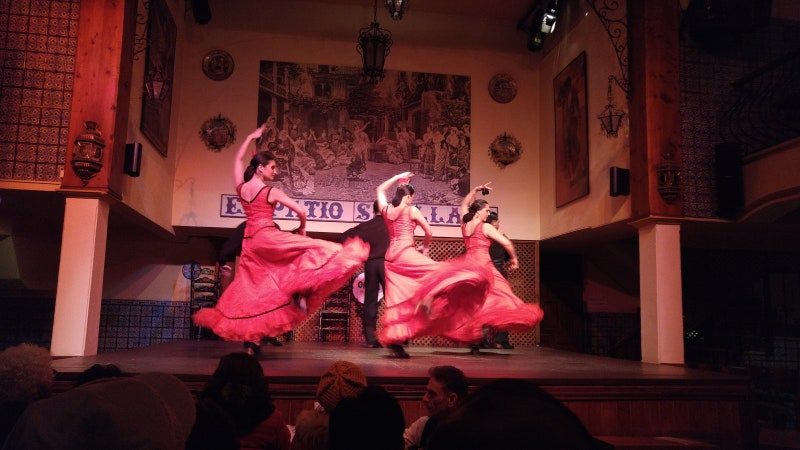 이 플라멩코 전용 극장은 1인당 70유로에 원하는 디너와 음료가 제공되는, Show + Dinner 플라멩코 공연을 보기 위해서 찾은 플라멩코 전용극장이다. 우리는 맥주, 와인, 탄산음료, 샹그리아 중 레드 와인을 주문한다. 샹그리아는 와인에 소다수와 과일을 섞어 만든 칵테일로 스페인식 전통음료란다. 눈과 혀로 스페인을 즐기고 느끼길 원한다면 샹그리아도 괜찮을 듯싶다.