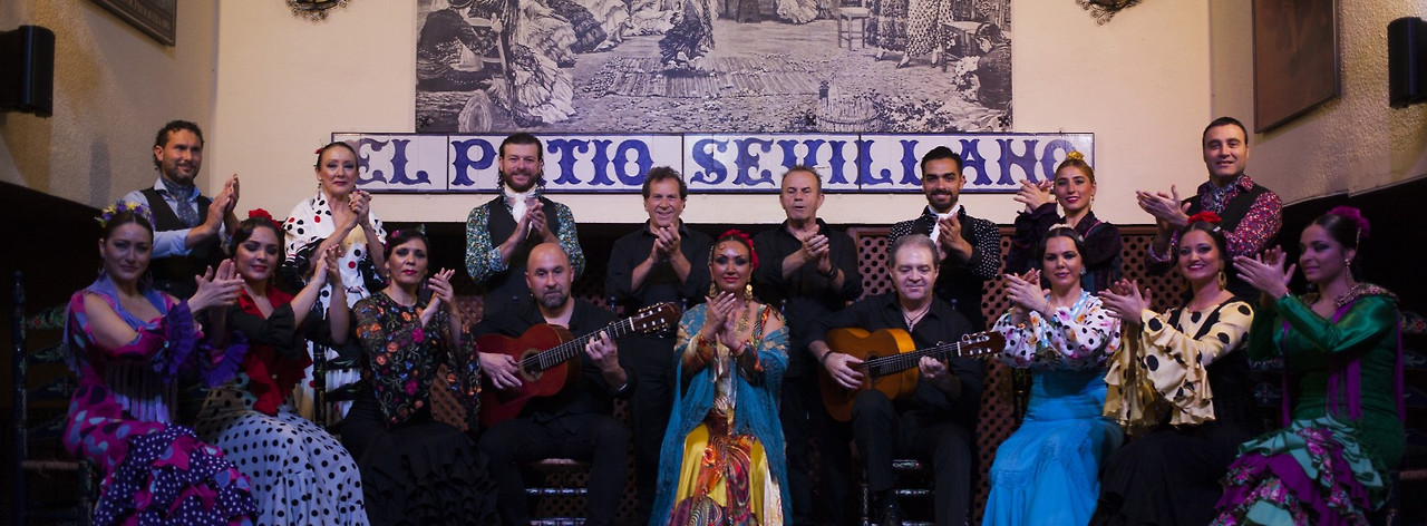 EL Patio Sevillano 공연장은 세비야에서 유서 깊은 플라멩코 전용극장 중 하나로, 과달키비르 강이 흐르는 콜럼버스 거리, 즉 Cristóbal Colón 거리의 Teatro de La Maestranza 극장 왼편에 자리하고 있다. 이곳은 특히 모차르트의 사후 200주년 기념비가 세워진 곳이며, 피가로의 결혼 같은 고전 오페라가 공연되는 Maestranza 극장과 가까운 거리에 있다.