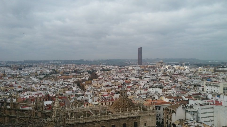 과달키비르 강변 상업 지구의 세비야 타워가 푸른 하늘로 솟구친다. 세비야 타워에 부딪친 햇빛이 반사되어 부서진다. 92년도에 세비야 세계박람회 Seville Expo '92가 이곳 과달키비르 강 까르투하 ISLA DE LA CARTUJA에서 열렸다. 오페라 카르멘의 배경이었던 세비야의 담배공장, 지금은 세비야 법대가 입주해 있는 건물을 지나 스페인 광장에 다다른다.