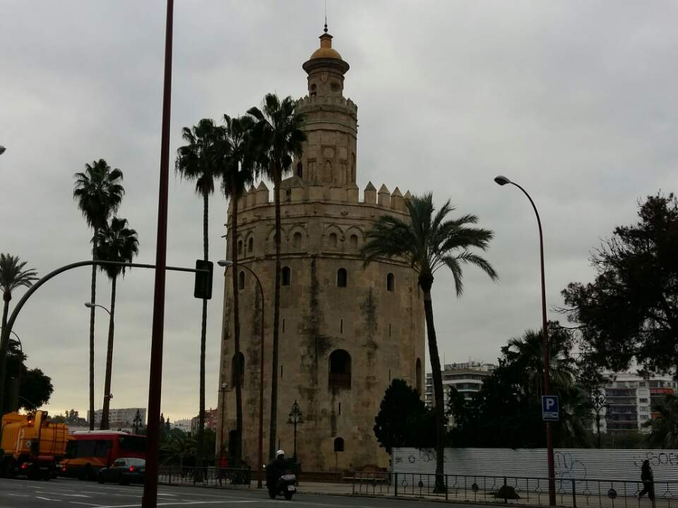 우리는 스페인광장을 벗어나 거리로 나온다. 과달키비르 강을 따라 걸어 산텔모 다리 Puente de San Telmo 옆에 세워진 정 12 각형의 황금의 탑에서 잠시 멈춘다.