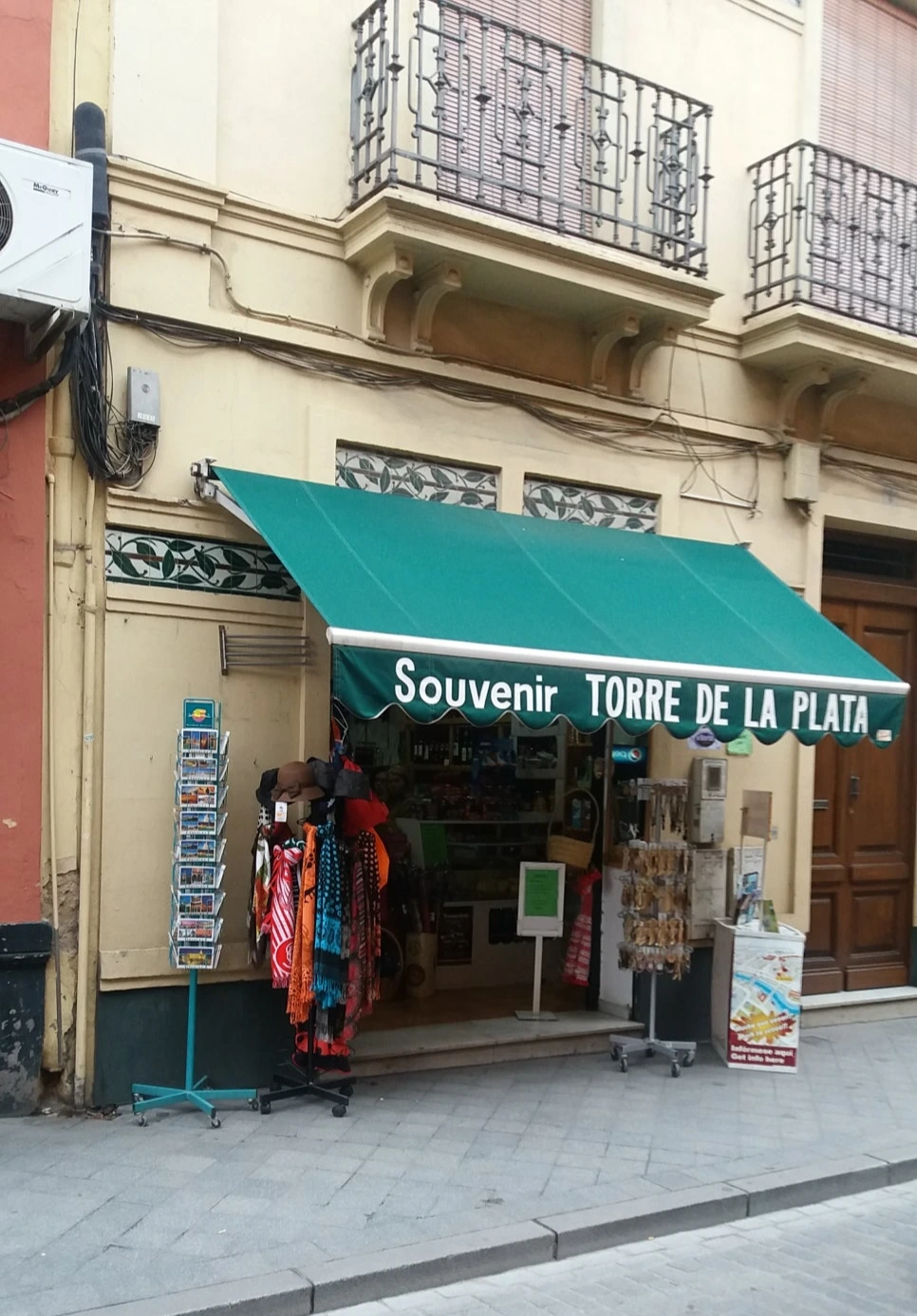 그런데, 이 여행기를 쓰기 위하여 조사를 하다 보니 알카사르를 방어하기 위한 방어벽과 연결되어 있는, 1992년에 복원된 Torre de la Plata를 황금의 탑 맞은편 강 건너에 있던 탑(anchor-point)으로 설명하고 있는 자료가 가끔 보이는데, 이는 잘못된 자료이지 싶다. 아무튼 과달키비르 강가를 걸으며 상가지역으로 들어가니 거리의 호텔과 상점의 상호에 토레 데 라 플라타 Torre de la Plata (은의 탑)를 많이들 사용하고 있다.