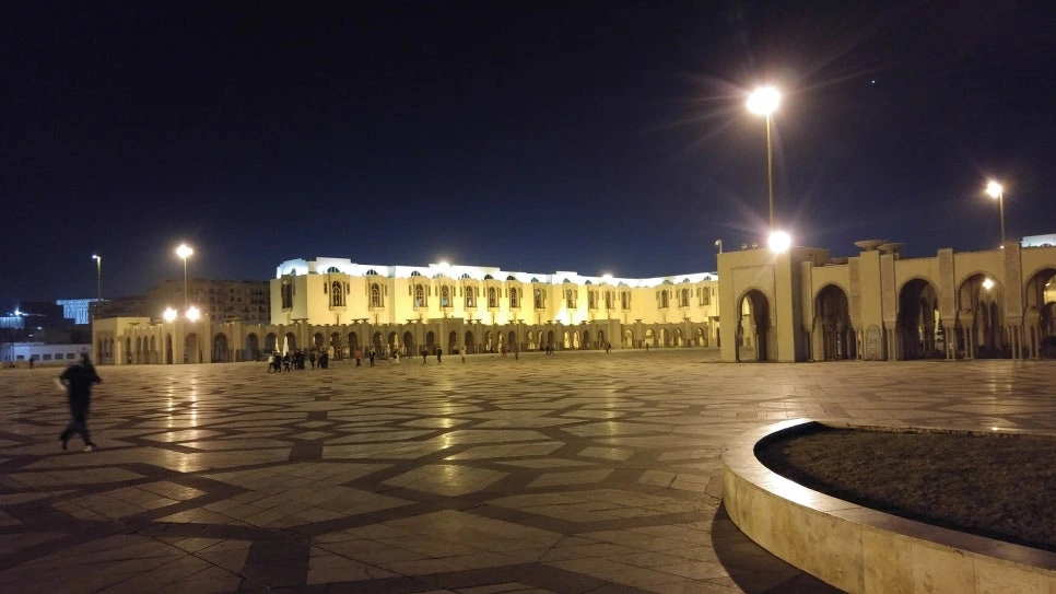 이른 아침 식사를 마친 우리는 새벽이 채 벗어지지 않은 이른 시간에 핫산 마스지드 Hassan masjid(스페인어:Mezquita)에 이른다. 새벽을 깨우고 모스크로 예배를 드리러 온 이곳 사람들의 모습이 드문드문 보인다. 붉은 조명에 감싸여 신비스럽기까지 한 모스크의 모습이 새벽어둠을 가르고 웅장한 모습을 드러내고 있었다. 210m에 이르는 모스크의 첨탑은 그 위용을 이방인에게 내보이기라도 하듯 붉은빛을 내뿜으며 섬세한 문양으로 정교하게 조각된 아름다운 자태를 드러낸다.