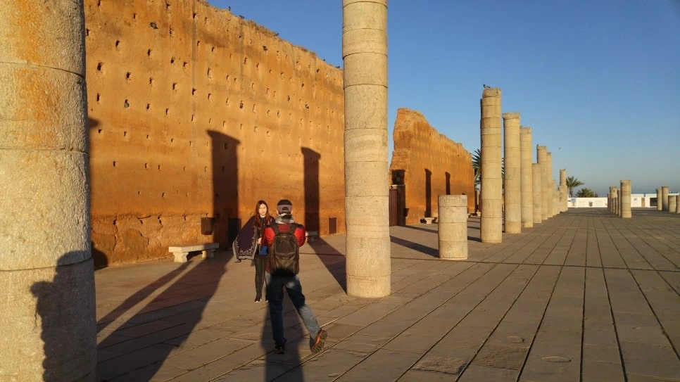아무튼 역사의 큰 소용돌이와 함께 했던 이곳 모하메드 5세의 영묘를 지키는 왕궁 근위병들은 여행객들의 기념촬영 요구에 응해주느라 바빴고 만수르 사망이 후 미완성으로 남은 핫산 탑은 왕조의 영묘를 지켜보고 있다.