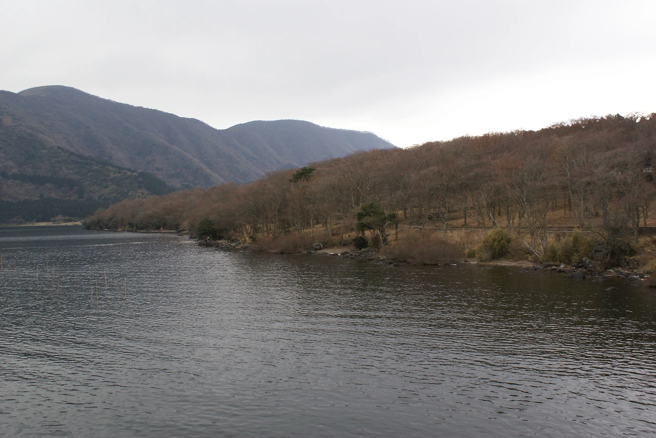 온천에서 나와 아시노코 호수 방면으로 향했다. 하코네 등산 철도를 타고 구불구불한 산길을 따라 오르면, 이내 드넓은 호수가 나타난다. 아시노코는 잔잔했다. 배가 떠도 물결 하나 크게 일지 않는 호수. 멀리 하코네 신사의 붉은 도리이가 물 위에 서 있고, 호수를 가로지르는 해적선 모양의 유람선이 천천히 미끄러져 간다.