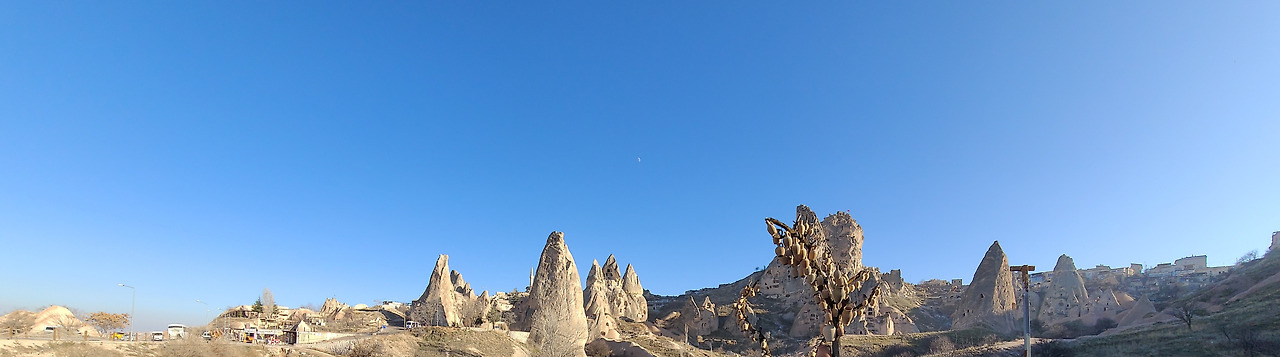 하늘마저 어찌 저리도 파란 지, 구름 한 점 없는 하늘엔 반달까지 떠있었다. 별유천지비인간(別有天地非人間)이 따로 없지 싶었다. 이백(李白)이 카파도키아를 다녀간 것도 아닐 텐데, 참으로 기막힌 비유를 남겼지 싶은 풍경이었다. 이백의 ‘산중문답(山中問答)’에서 나온 별유천지는 신선이나 살 법한 이상세계를 이르는 말인데, 별유천지는 맞지만 신선은 없었고 절경을 찾은 사람들만 가득했다.