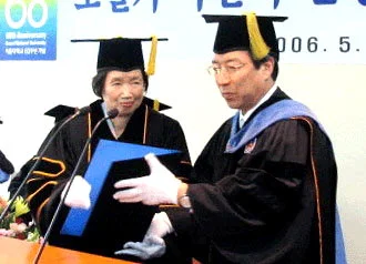 전쟁이 끝나도 가정에 헌신하느라 소설가가 된 이후로는 집필에 열중하느라 서울대 문리대로 복학하지 못했다. 박완서 소설가는 2006년 75세 나이로 명예박사 학위를 받는다. 문화예술인으로는 첫 사례다. 학위수여식에서 답사를 보면 박완서 작가의 솔직함이 고스란히 묻어 나온다. 명예박사에 큰 감흥이 없음을 가감 없이 말하면서, 학벌주의로 부당한 편익을 본 후일담과 격하된 인문학의 가치에 대한 소회를 솔직하게 소개했다. 그러나 가장 소박한 비유로 감사와 자랑스러움을 전하는 마지막 대목이 인상적이다. 여기에 박완서 소설의 정수가 묻어있다.