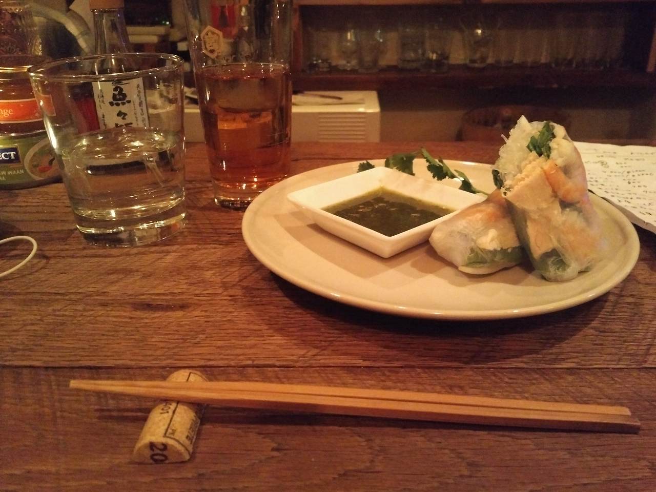내가 조금 늦었는지 미치코상은 이것저것 시켜서 먹고 있었다. 전날 먹다 남아서 가게에 맡겨 놓은 복분자를 또 돌리고 사람들에게 라면 한 개씩을 선물했다. 이 가게에서 주인상의 요리를 먹어 본 적이 없는데 자꾸 옆에서 권하기에 만만한 걸 시켜 봤다. 내가 제일 어려워 하는 동남아 요리가 주력이었다... 먹을 만한 게 나와서 다행이었다.