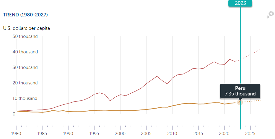 감을 조금 잡기 위해 숫자를 간단히 살펴보자면 IMF의 올해 가장 최근 데이터 기준 우리나라의 1인당 GDP는 USD 34,770불인데 비해 페루의 1인당 GDP는 USD 7,350이다. 1991년 우리나라 1인당 GDP가 USD 7,640불이었다고 하니 물론 명목적인 숫자로 판단할 수 있는 간단한 문제는 절대 아니지만 내가 지금 와있는 페루라는 나라는 우리나라의 약 30년 전이라고 대략적으로 생각해 볼 수는 있겠다.