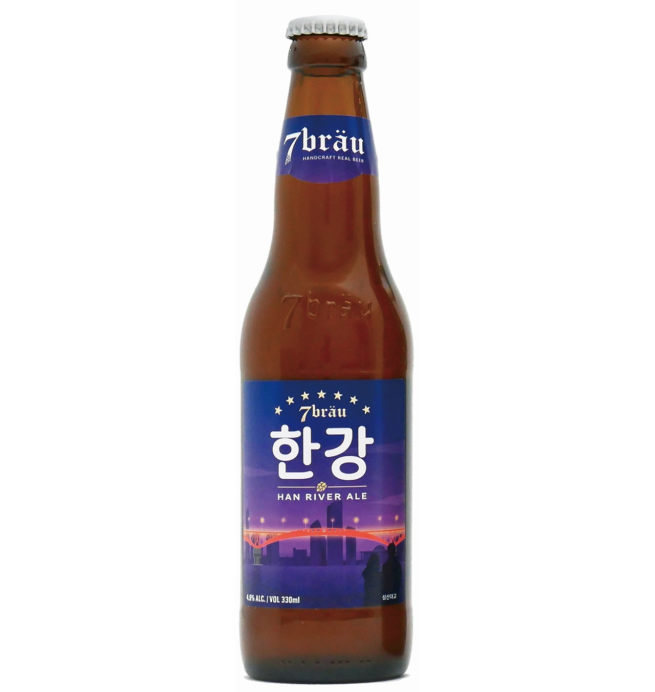 한강 수제맥주 한강은 시트러스향이 상큼하고 청량하게 느껴지는 밀맥주다. 밀 맥아를 베이스로 해 부드럽고 조밀한 거품이 특징이다. 맥아의 단맛과 오렌지 껍질의 청량감이 잘 어우러져 오래도록 편안하게 마실 수 있다. 한강은 세븐브로이에서 제조하고 있다. 고즈넉한 저녁에 한강에서 서울의 야경을 보며 즐기는 콘셉트다. 라벨에는 서울야경명소로 유명한 한강의 성산대교 삽화를 넣었다.