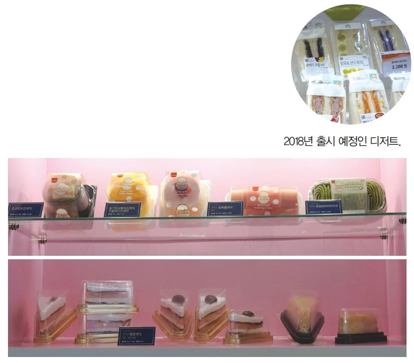 ● 디저트 베이커리는 인기를 끌었던 기존 제품 라인을 강화한다. 과일샌드위치는 블루베리, 앙버터 크림 샌드위치 등 메인 재료를 차별화했다. 모찌롤케익과 티라미수는 딸기, 녹차 등새로운 맛을 추가로 출시한다. 수플레 케이크 등 생과일과 좋은 원료를 사용한 전문점 타입의 냉장 디저트는 지속 확대한다.