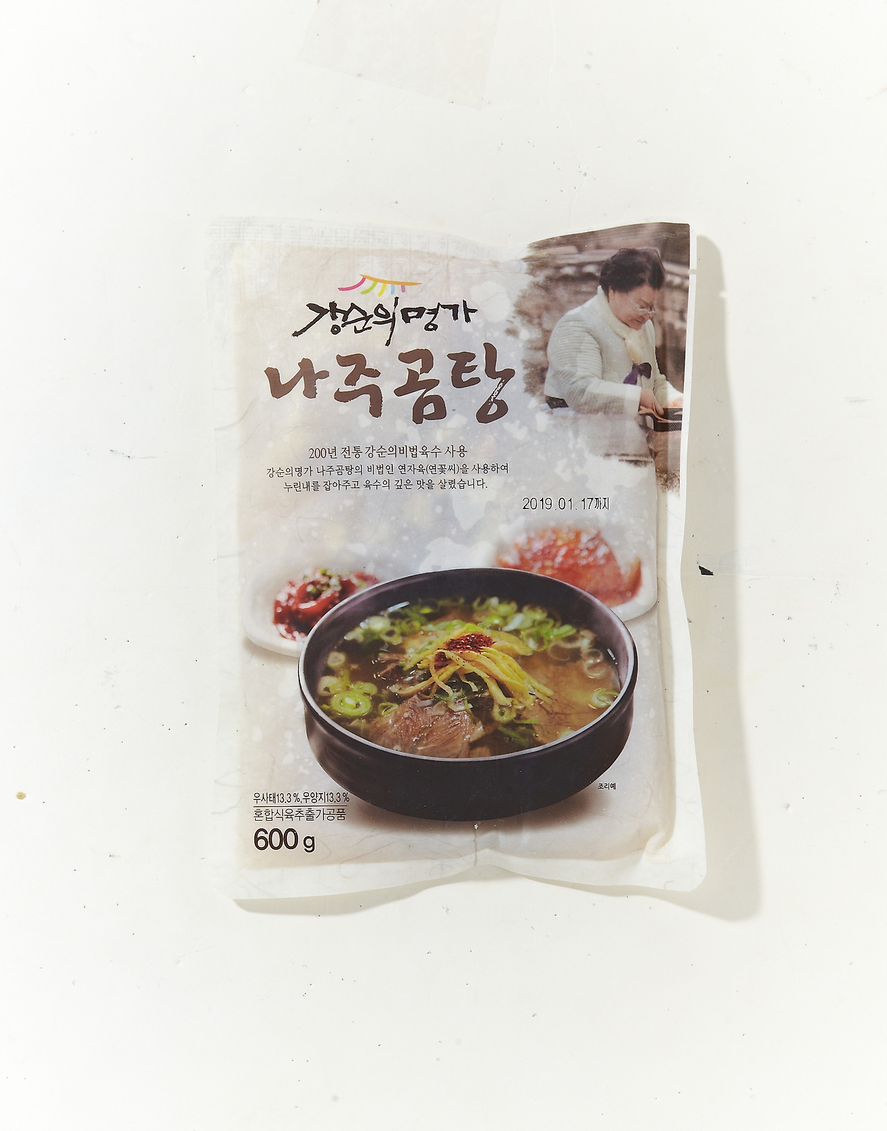 곰탕도 맛에 대한 강 대표의 고집이 오롯이 밴 제품이다. 강 대표는 “곰탕 제품에 여러가지가 들어가면 고기가 나쁜 것“이라고 말한다. 강순의명가의 나주곰탕은 오직 마늘, 생강, 파와 사골 육수 뭉친 것, 한약재로 쓰이는 연밥, 연자육 등만 포함되어 있다. 연자육은 속이 안정되지 않을 때 먹으면 속이 편안해지는 역할을 한다. 강 대표는 강순의명가 나주곰탕에 대해 아토피가 있는 어린 아기가 먹어도 된다는 자신감을 보였다.