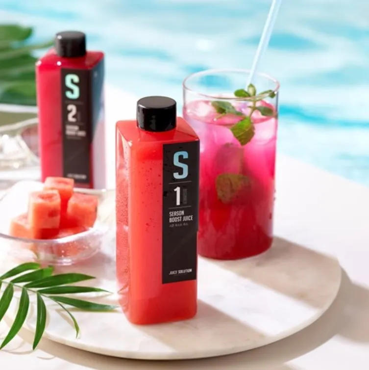 수박 부스트 주스는 맛에 더 중심을 둔 S1과 영양에 더 중심을 둔 S2 두 종류로 출시했다. S1은 수박 착즙에 멜론, 적포도 등 과일 착즙을 조합해 달콤하고 청량한 맛을 부각했다. S2는 수박 착즙에 토마토, 비트, 샐러리 등의 채소 착즙을 더해 건강한 맛과 노폐물 및 유해산소 배출 등 영양적 효능에 집중했다.