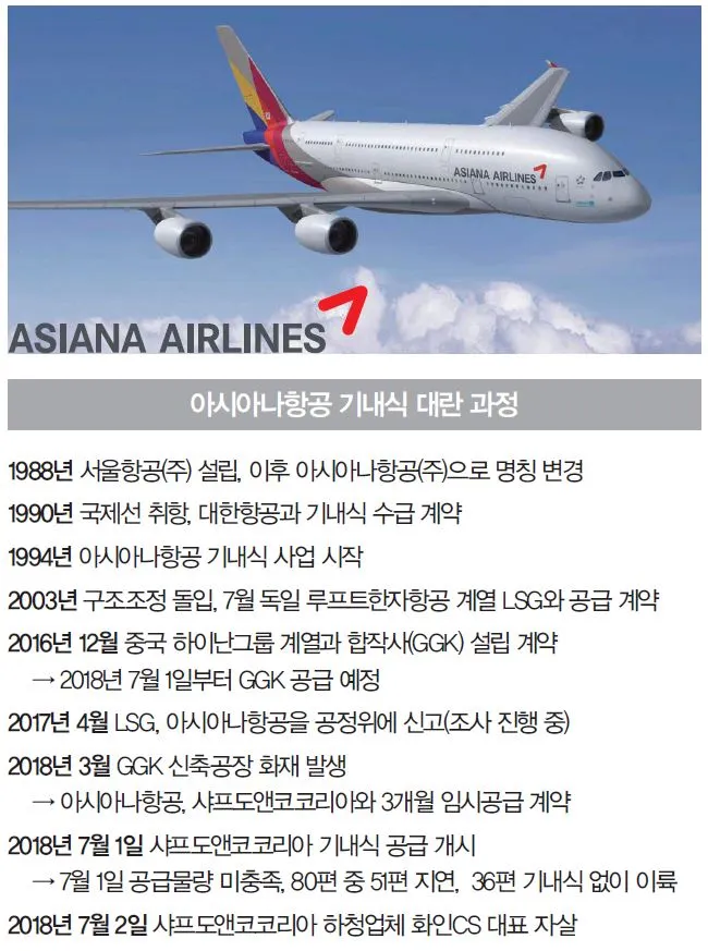 아시아나항공 기내식 대란은 기본적으로 이런 특수한 환경에서 일어났다. 그럼에도 불구하고 사업체 대표를 죽음으로까지 몰아간 배경에는 의구심이 많다. 지금까지 산발적으로 알려진 이 사태를 종합 정리하면 다음과 같다.
