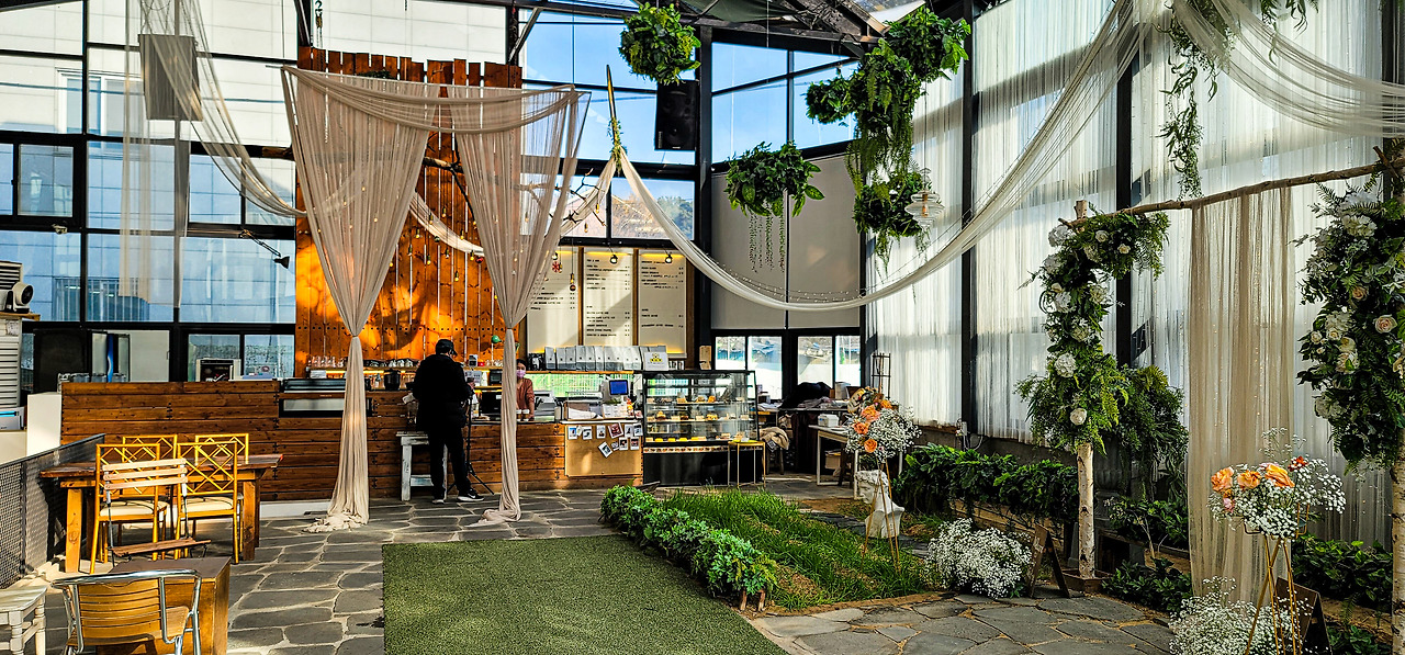 한때 수목원이었던 곳은 뼈대가 그대로 살았다. 2미터가 훌쩍 넘는 나무 문이 멋스럽게 추억을 가둔다. 저 문을 열고 나가면 그때 그 시절로 돌아갈 수 있으려나? 너무 갔다. 영화를 너무 많이 봤다. 그래도 그렇게 찰나나마 그렇게 믿으면 문을 열어보고 싶다. 카메라 뷰 파인더 너머 다시 그 시절이 그대로 있었으면 좋겠다.