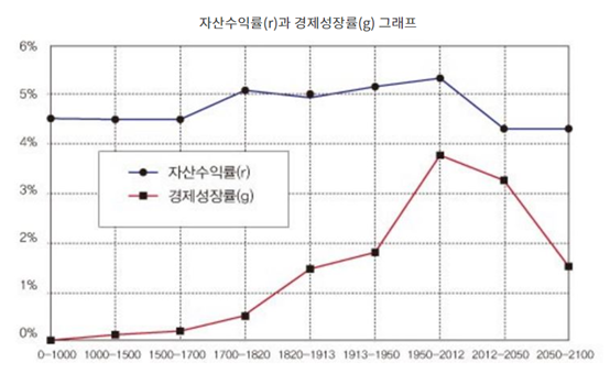 『21세기 자본론』을 쓴 토마 피케티는 ‘ r > g ’라는 공식을 가지고 부의 양극화에 이야기를 하였다. 여기서 r은 자본수익률을 의미하고, g는 경제성장률을 의미하는데 자본이 증가하는 속도가 경제성장률보다 더 빠르다는 것이다. 즉, 돈이 많은 사람이 더 많은 돈을 벌 수 밖에 없다는 말이다.