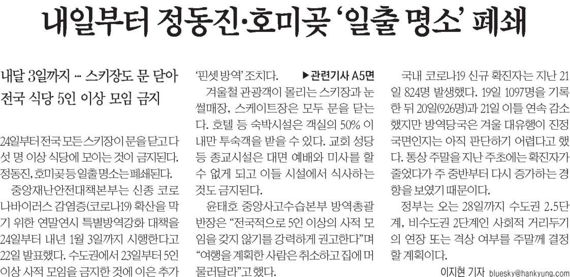 - 24일부터 정동진, 호미곶 등 일출명소 폐쇄