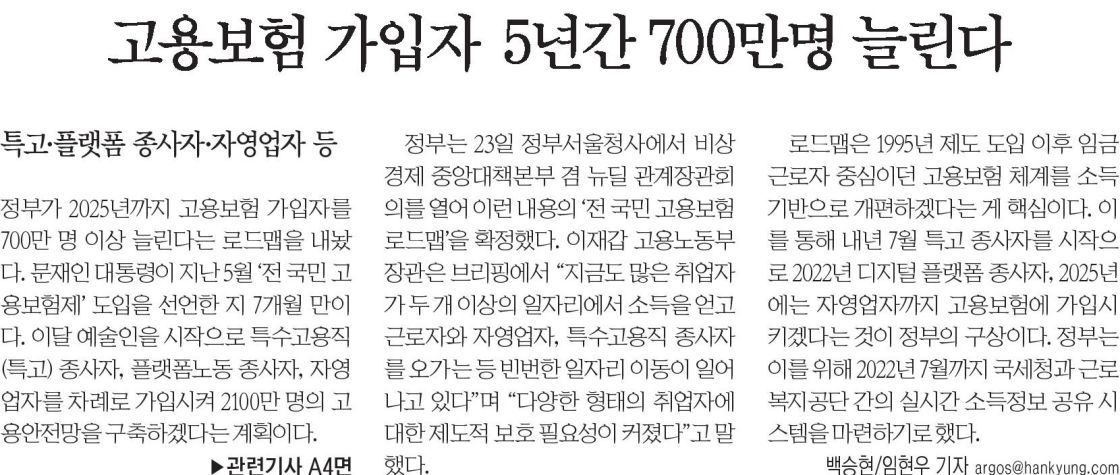 - 특고, 플랫폼 종사자, 자영업자 포함