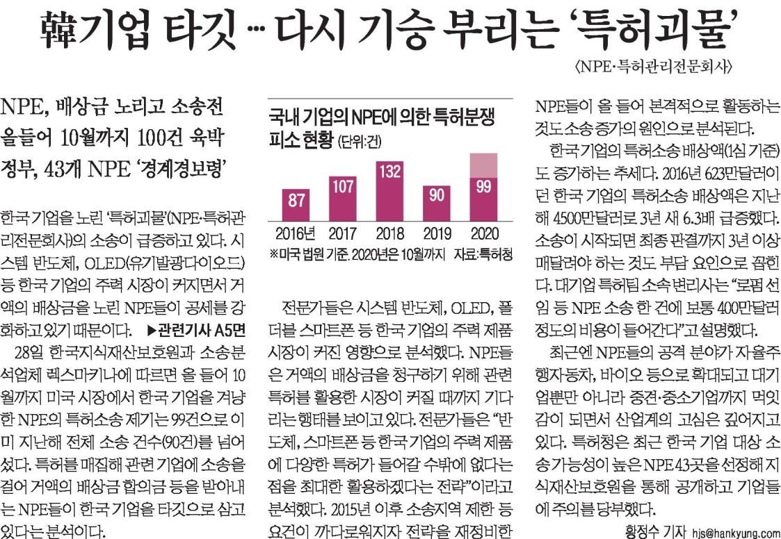 - 한국기업들 대상으로 특허괴물들의 소송 급증