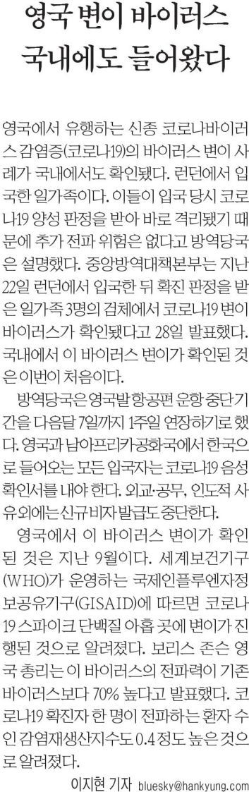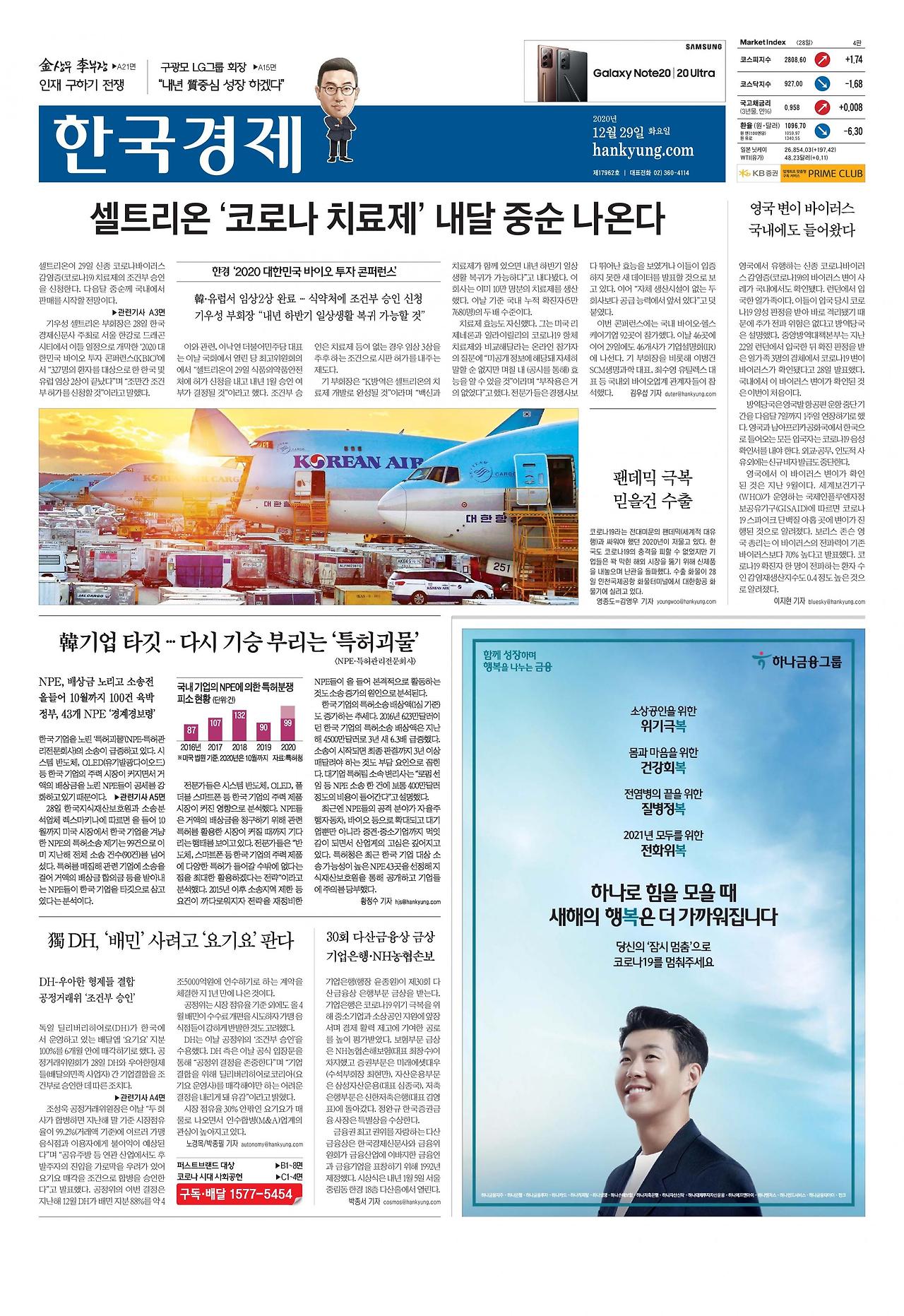 2020년 12월 29일 경제신문1면읽기 입니다.