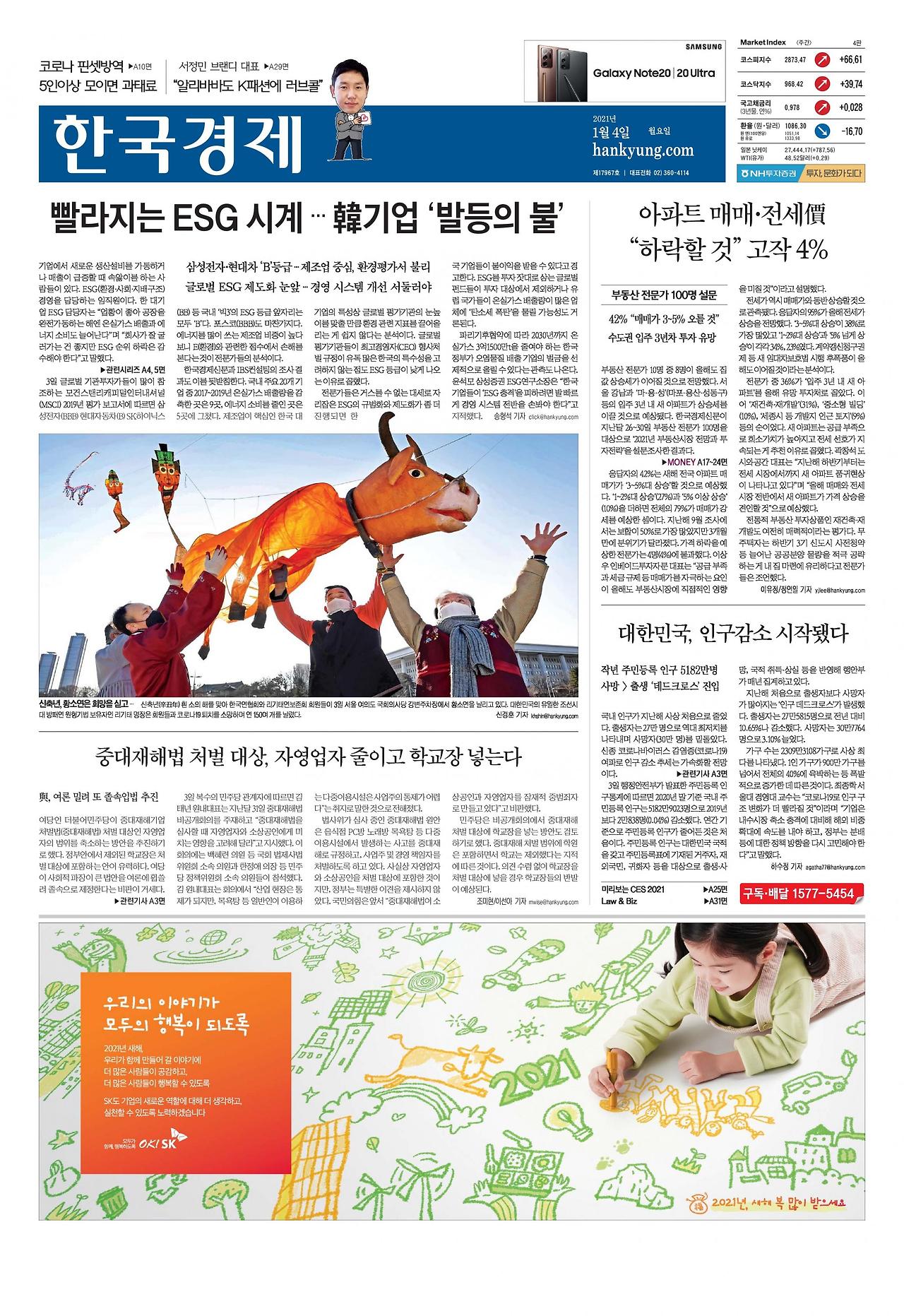 2021년 1월 4일 월요일 경제신문1면읽기 입니다.