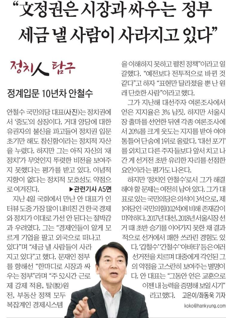 - 안철수 " 기업인들 기업팔아 외국으로 떠나고 있다 "