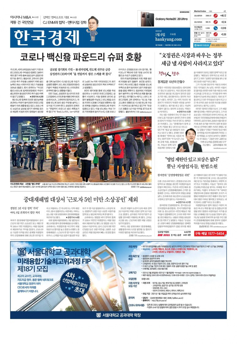 2021년 1월 6일 수요일 경제신문1면읽기 입니다.