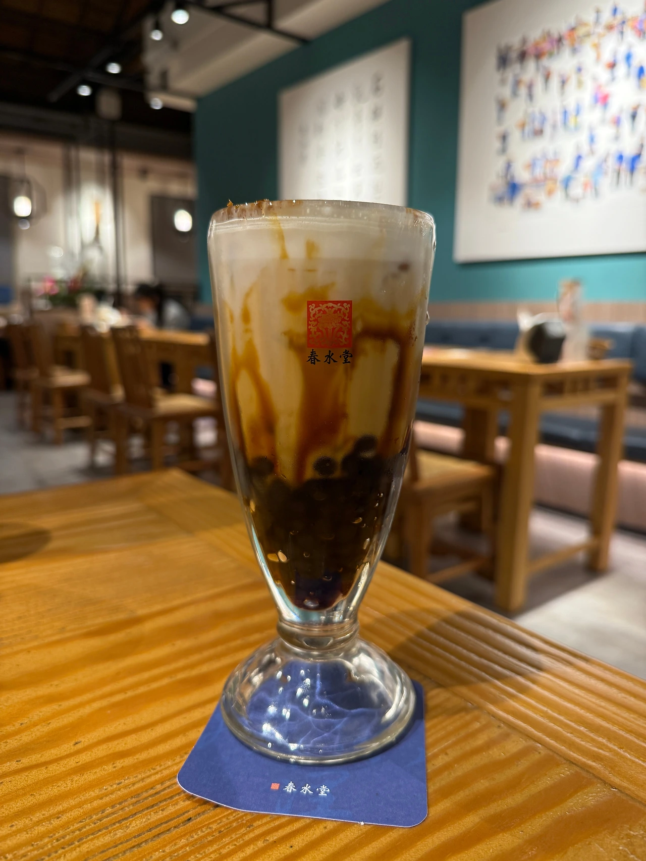 이번 여정에서 버블티의 원조라고 알려져 있는 춘수당에 갔다. 이름부터 전통의 향기가 나는 춘수당. 한국에서도 버블티를 자주 마셨기에 특별한 맛을 기대하지는 않았다. 그렇지만 특별함은 평범함 속의 작은 차이에서 피어난다. 춘수당의 흑당 버블티는 고소함과 달콤함이 각자의 선을 잘 지키며, 완벽한 조화를 이뤘다. 고소한 풍미를 간직하면서 과하지도 부족하지도 않은 단맛, 타피오카펄의 쫀득함이 입안에 오래 머물렀다.