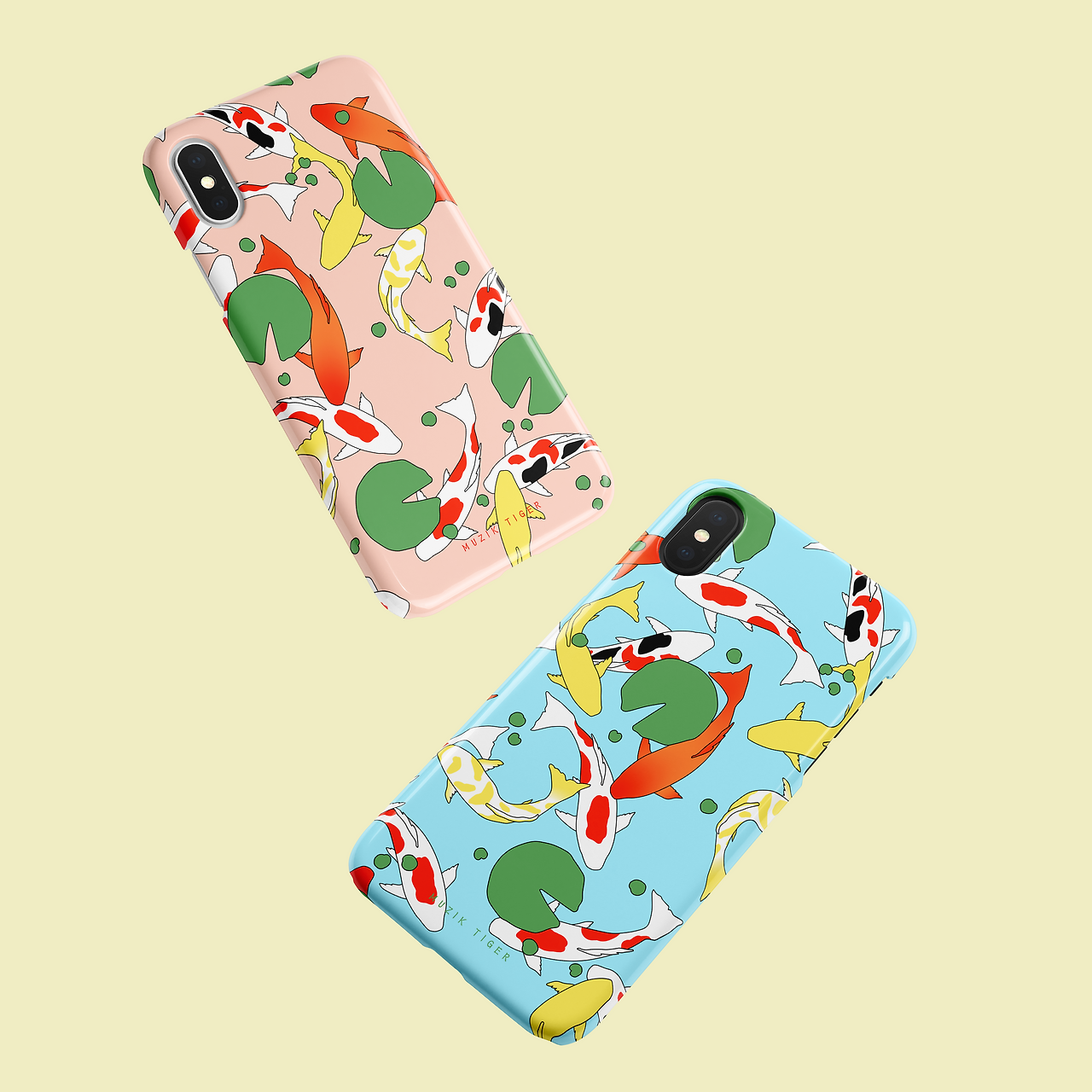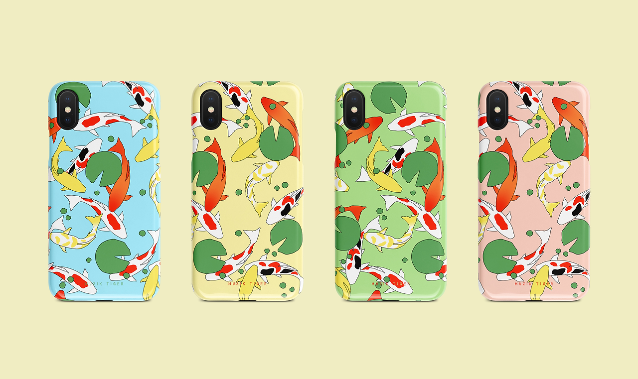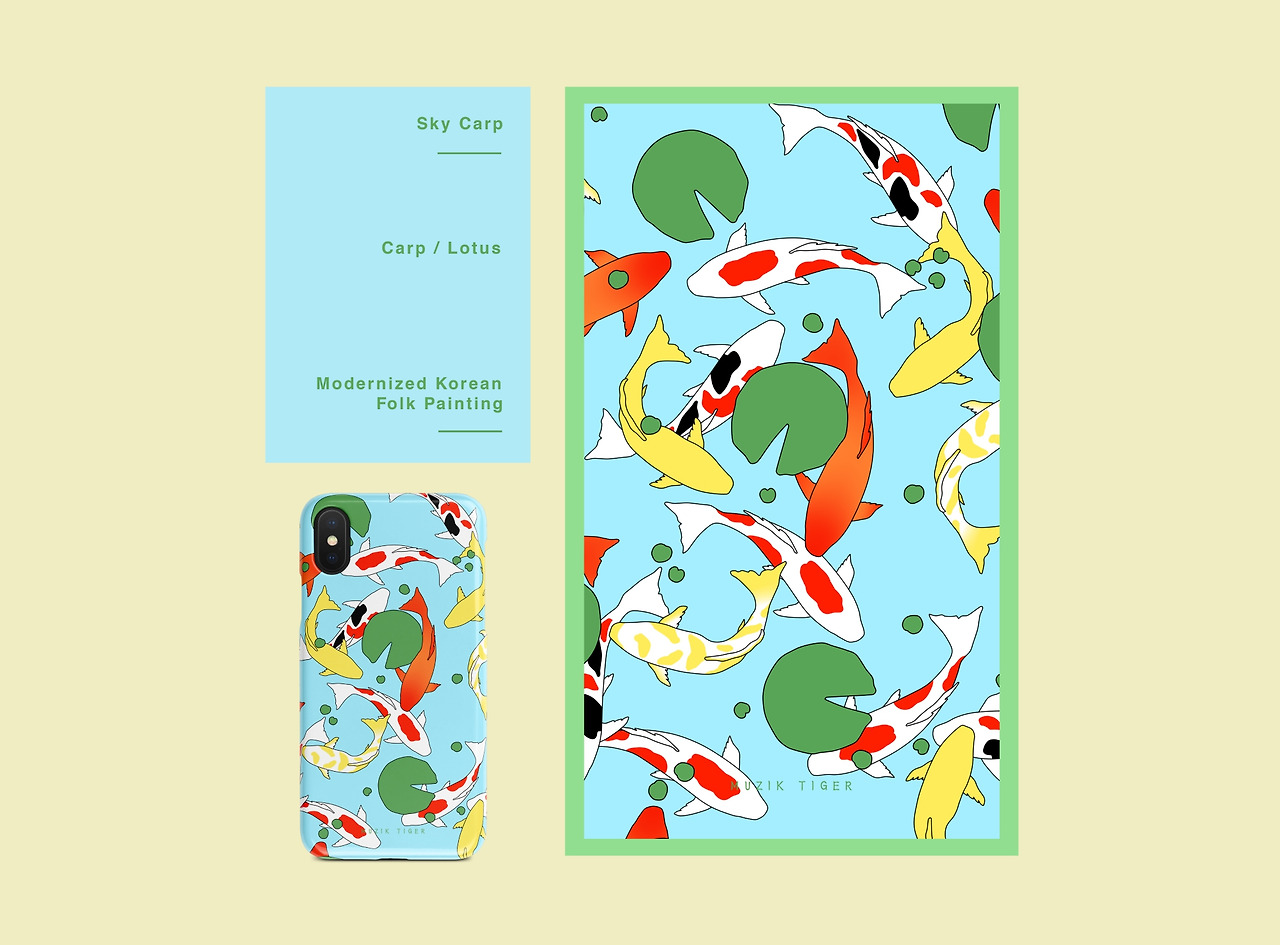 재밌는 지점은 잉어들의 채도는 유지한 채, 배경의 색감 변화만 주니 색끼리 서로 얽히기도하고 풀어지기도 하는 디자인이 되었다는 거예요.