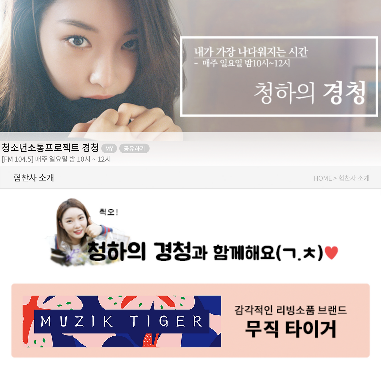 그리고 이번에는 무직타이거가 가수 ‘청하’의 라디오 프로와 함께 하게 되었습니다.